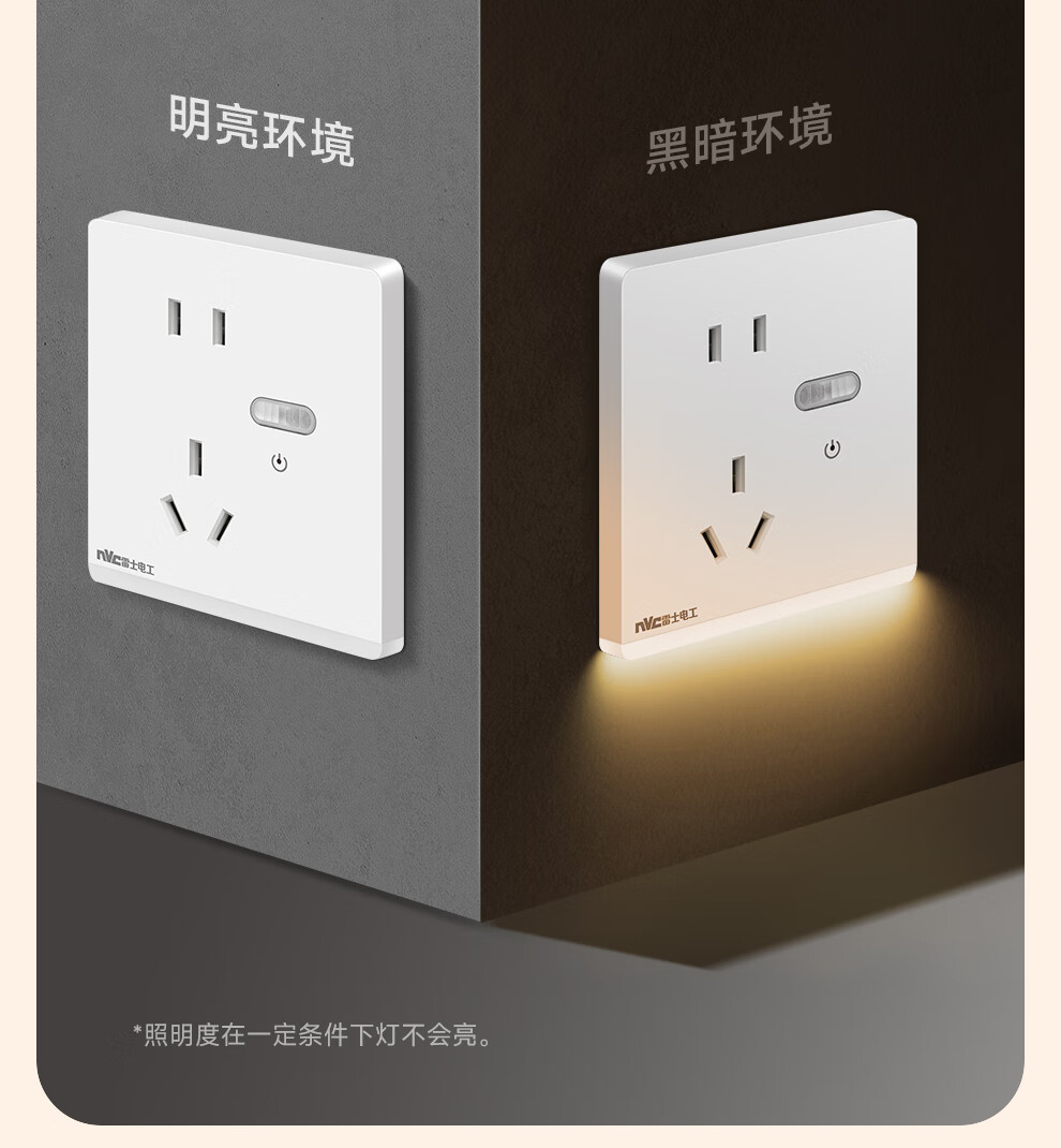 NVC NVC Elektriker-Schaltsteckdose, Fünf-Loch-Steckdose mit menschlichem Körper, Induktion, Fußlampe, Nachtlicht, 86 Typ, Steckdosenleiste, N25, mattweiß
