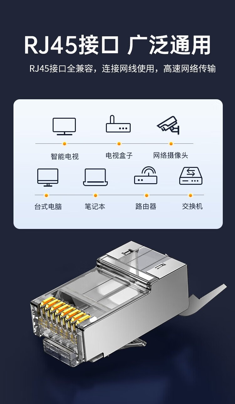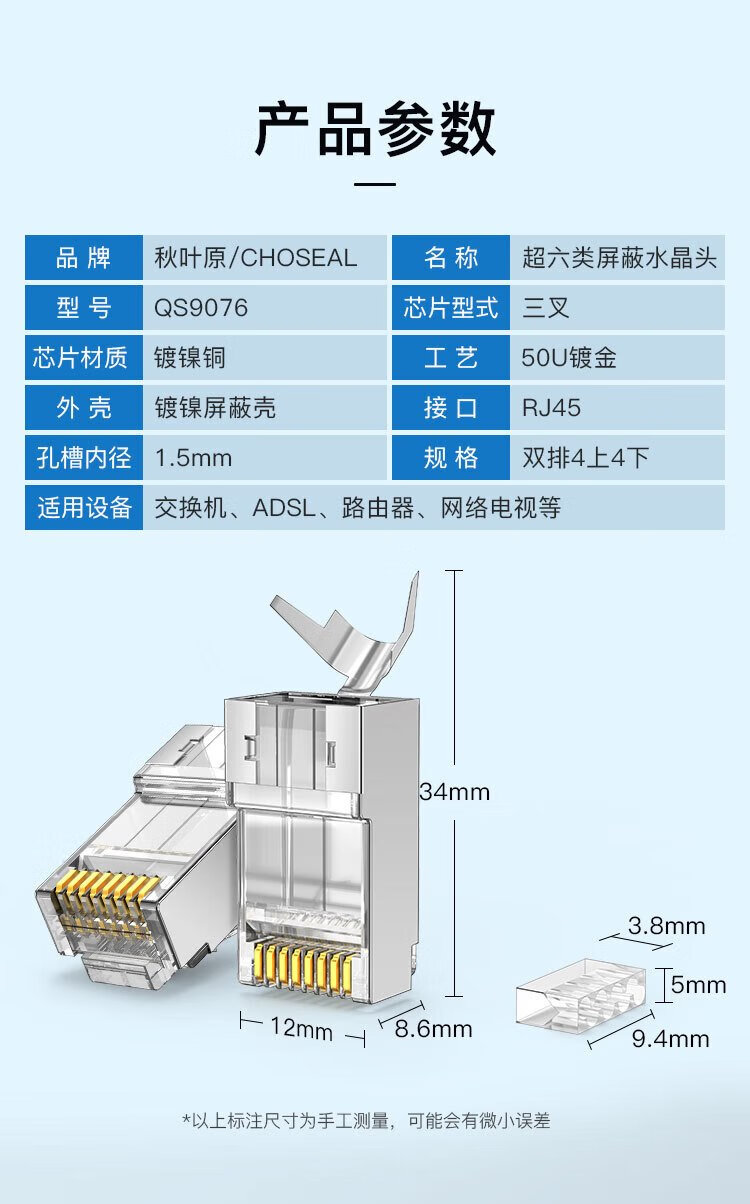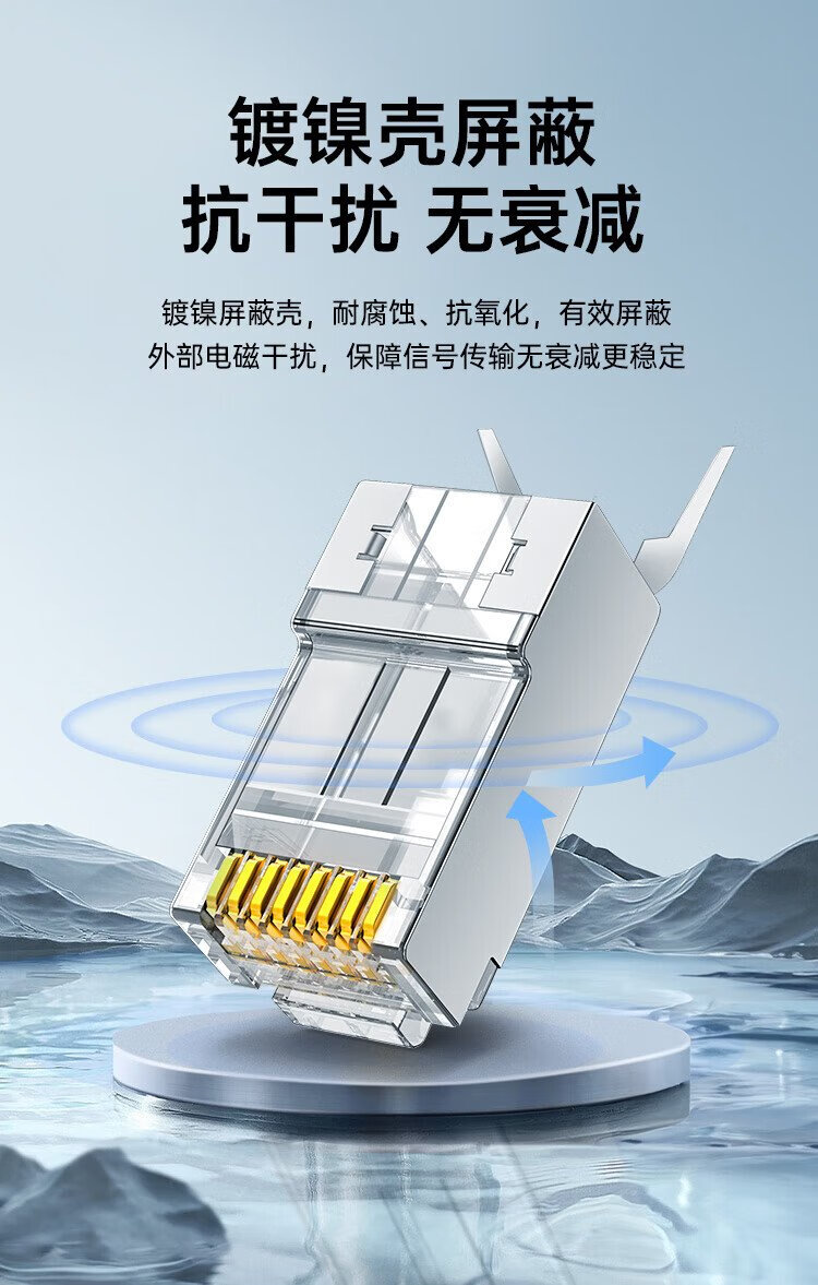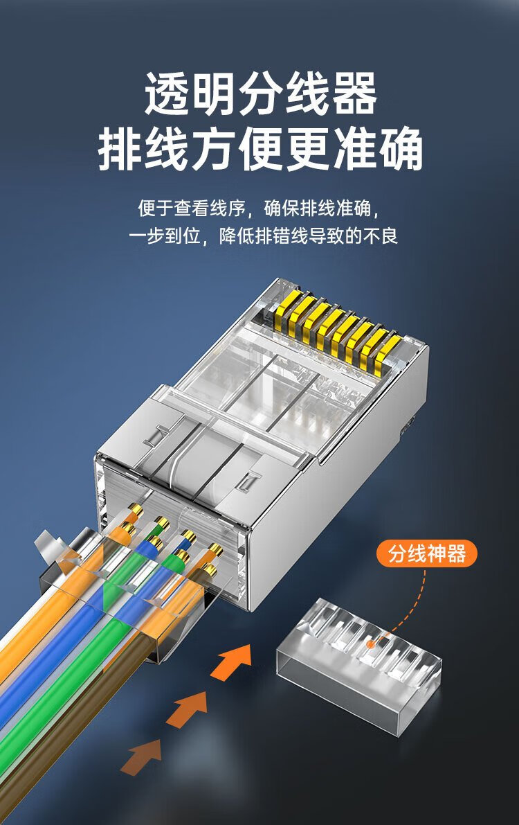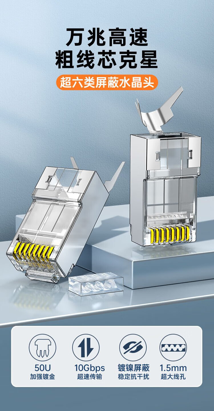 秋叶原 超六类网线水晶头 超6类万兆工程级网络连接器 Cat6a屏蔽RJ45电脑网线接头两件式 10个 QS9076Z10