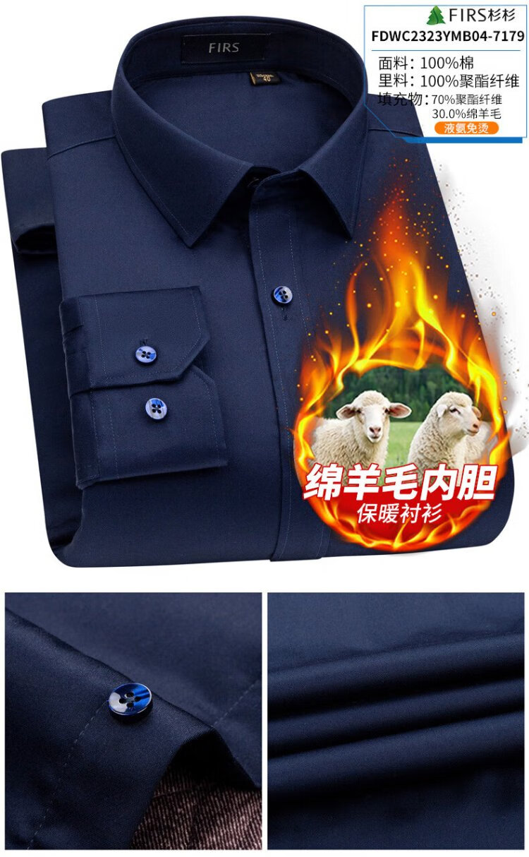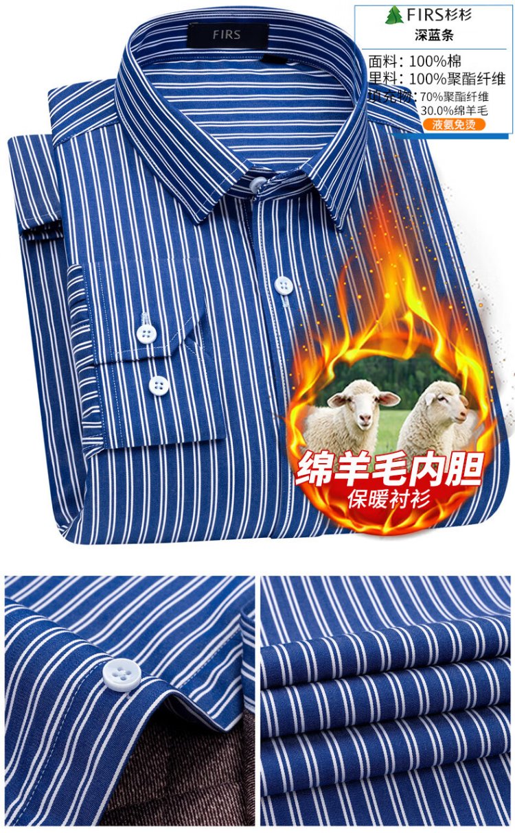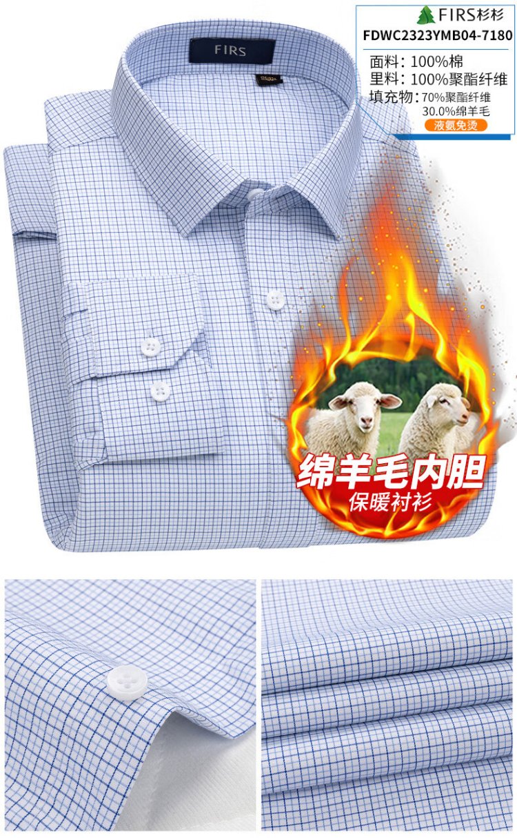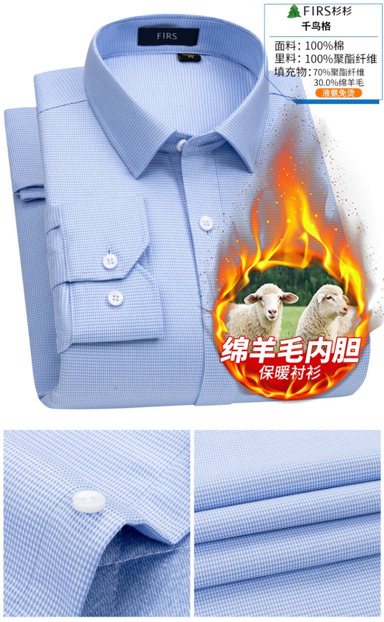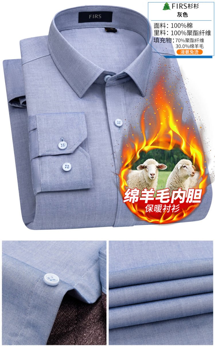 杉杉(FIRS)【羊毛内胆】保暖衬衫男纯棉免烫商务加厚衬衣 灰色保暖 42