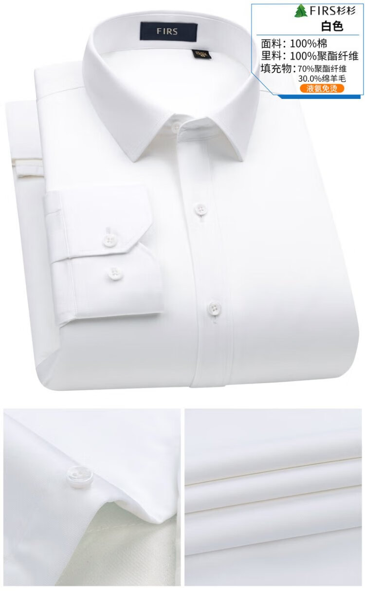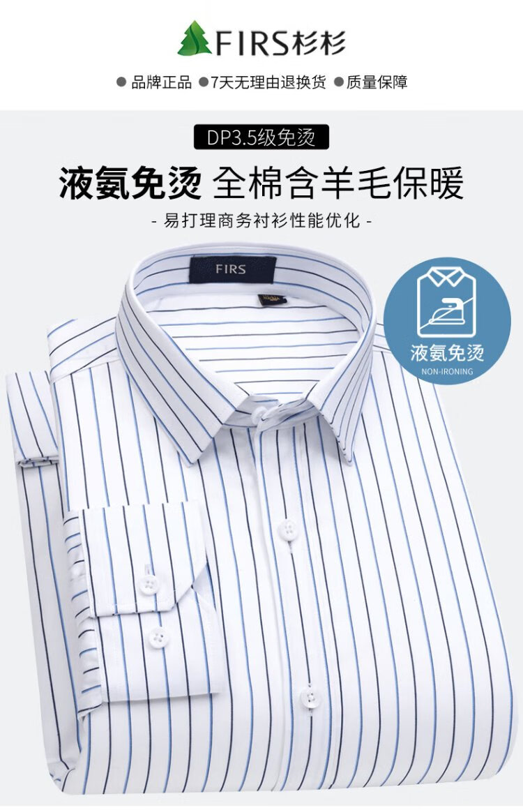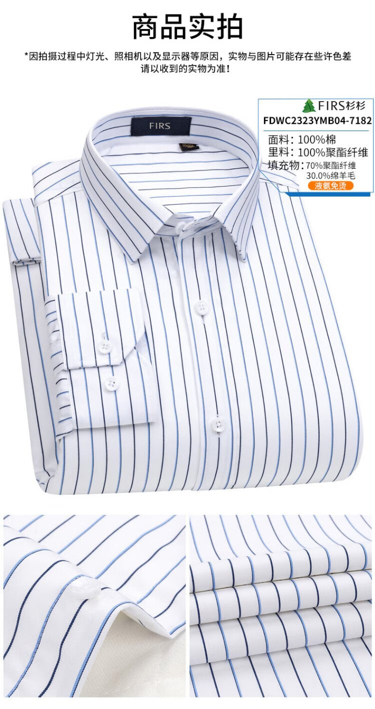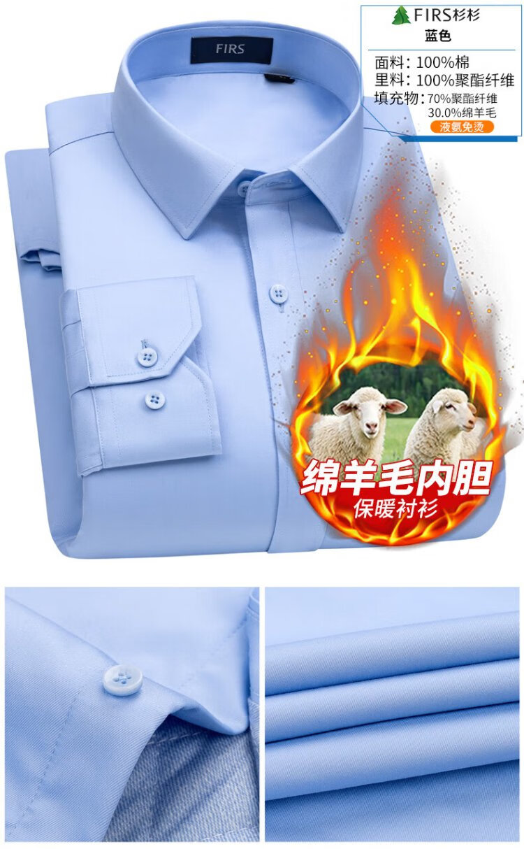 杉杉(FIRS)【羊毛内胆】保暖衬衫男纯棉免烫商务加厚衬衣 灰色保暖 42