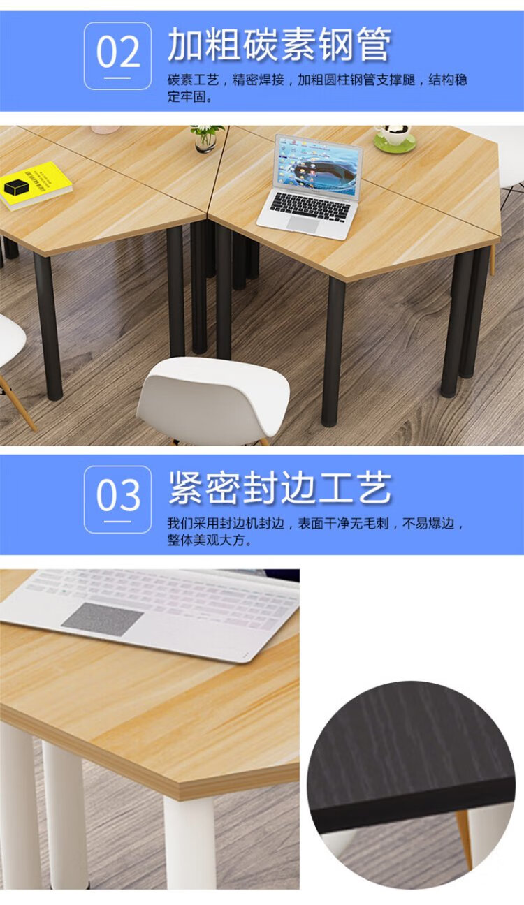 霖澜学生阅览室图书馆六边形课桌培训会议桌活动桌单桌不含椅