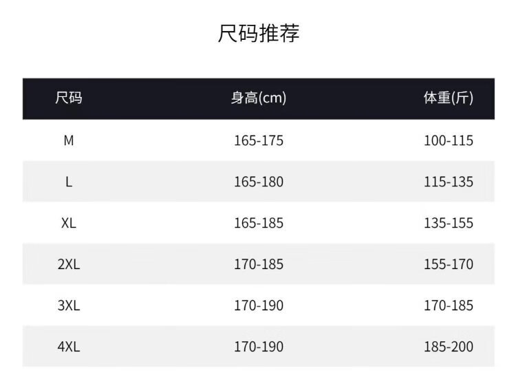 China (cm) 165 / 88-90 170 / 96-98 175 / 108-110 180 / 118-122 185 / 126-130