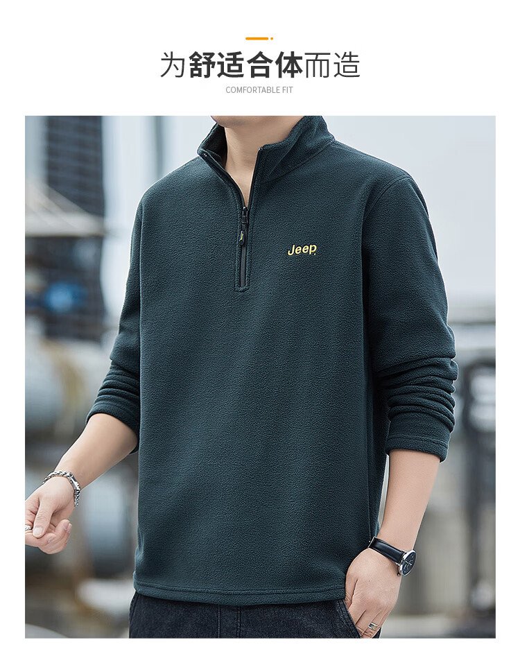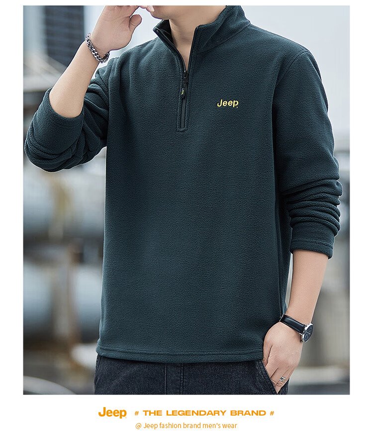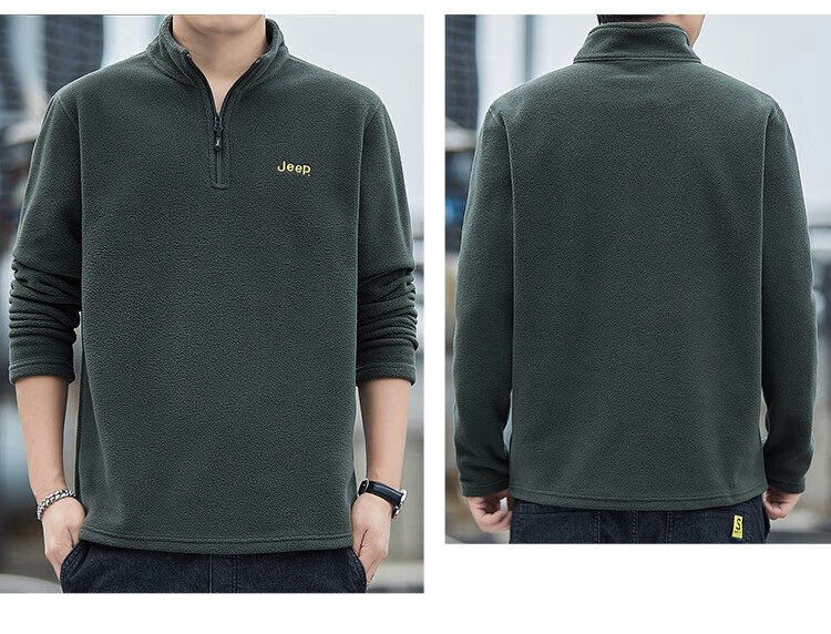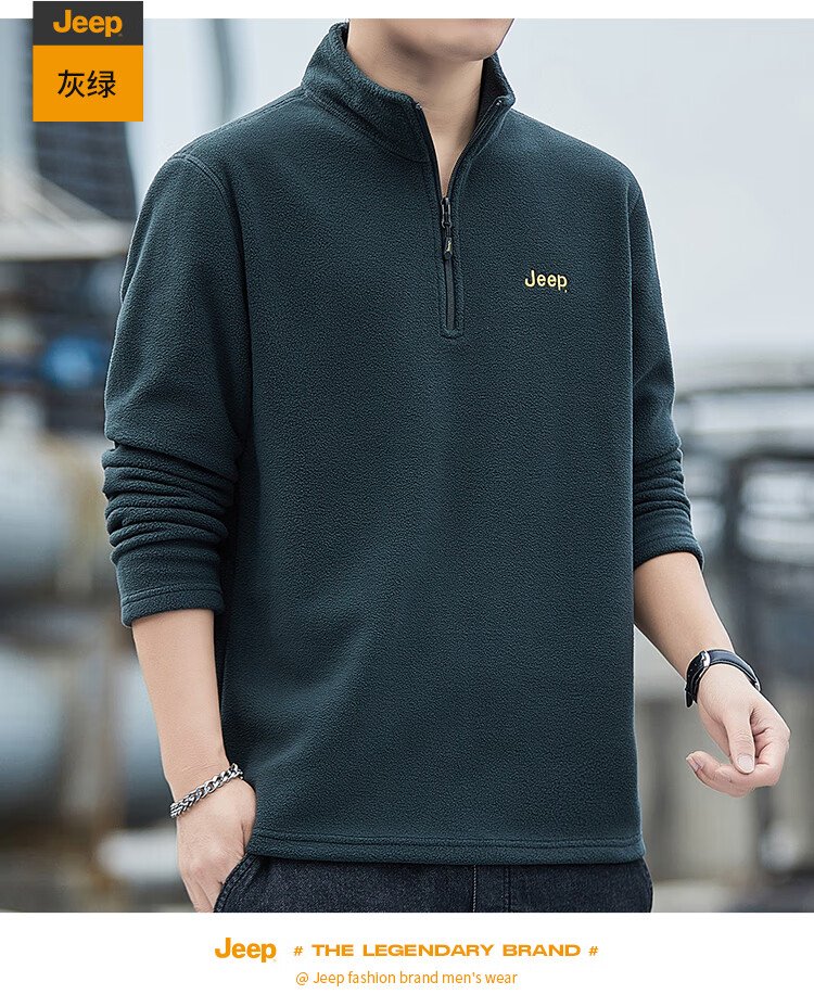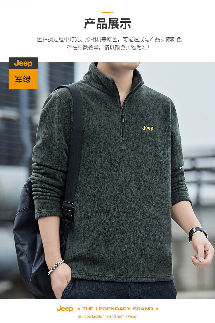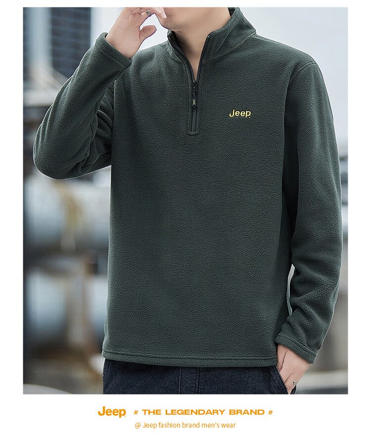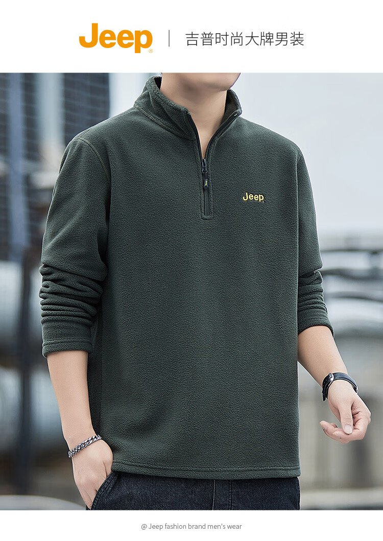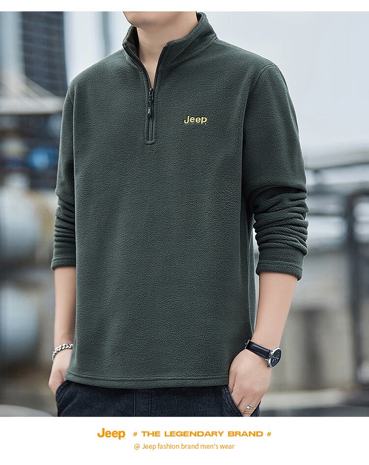 JEEP吉普卫衣男士秋冬季宽松长袖T恤摇粒绒加厚休闲衣服男装 军绿 XL
