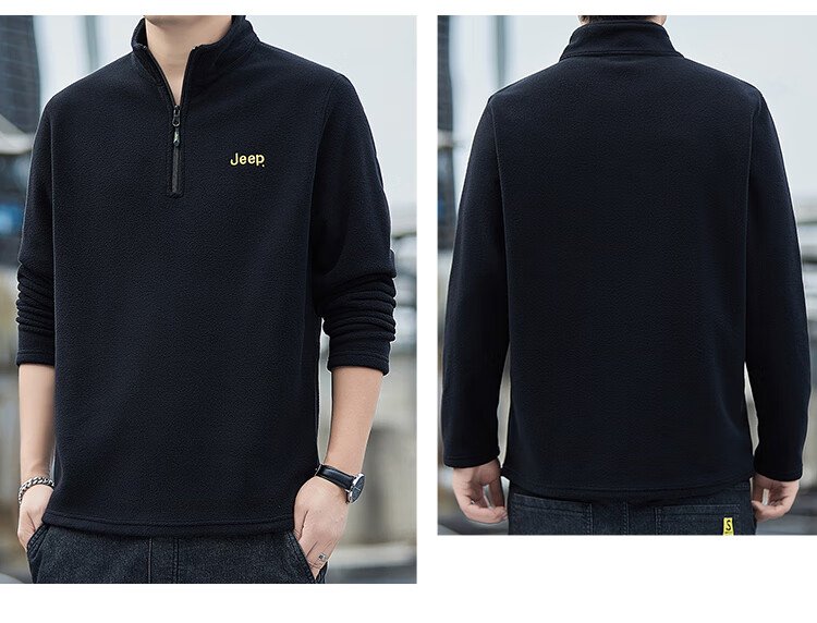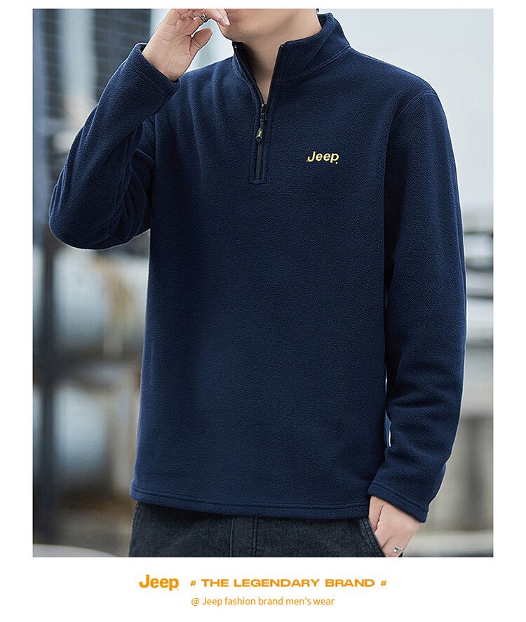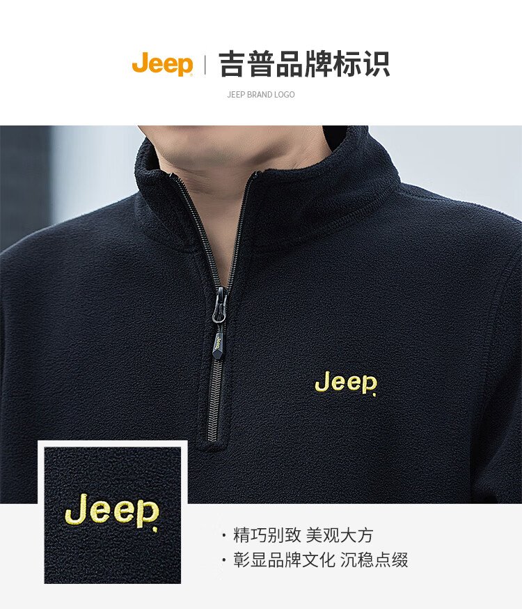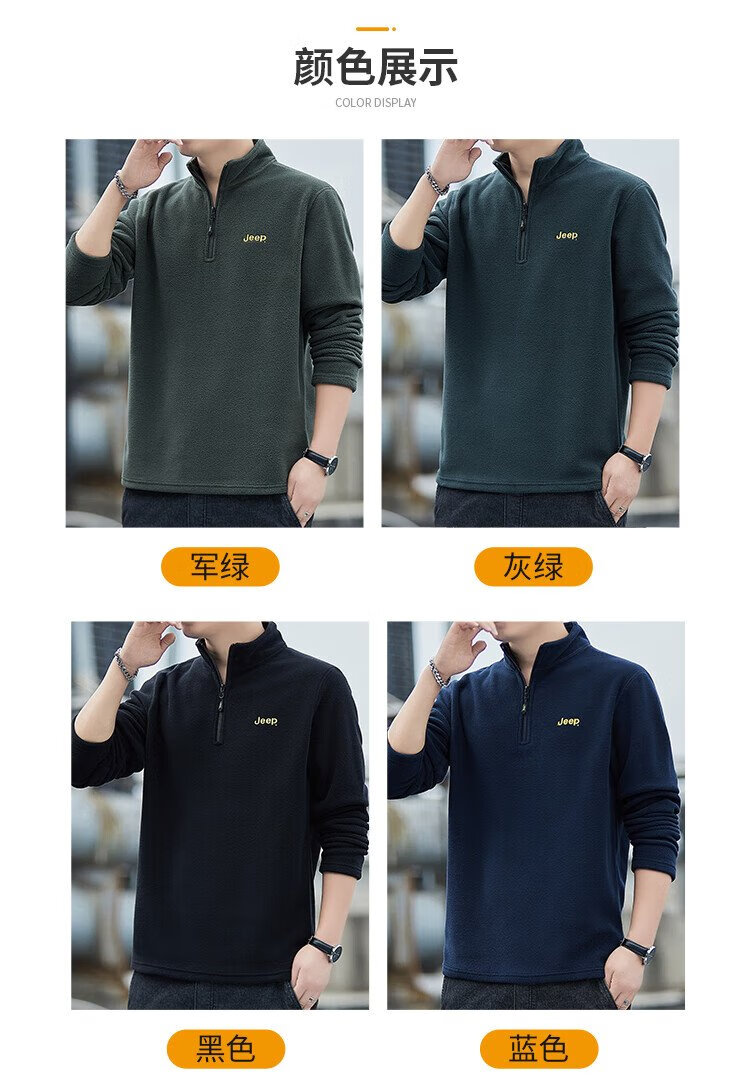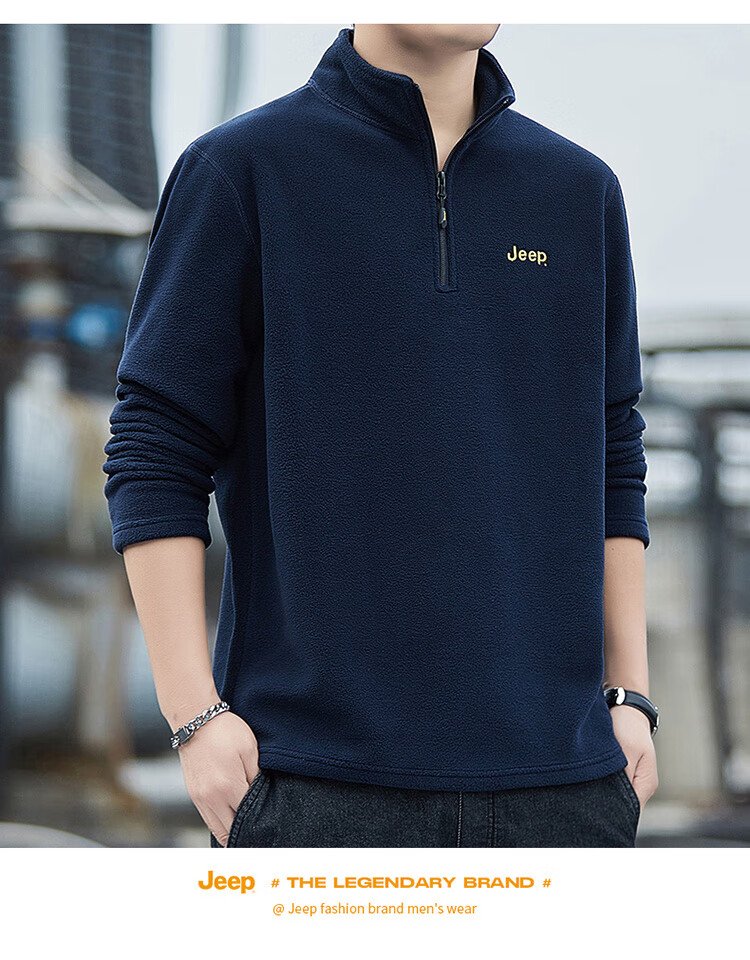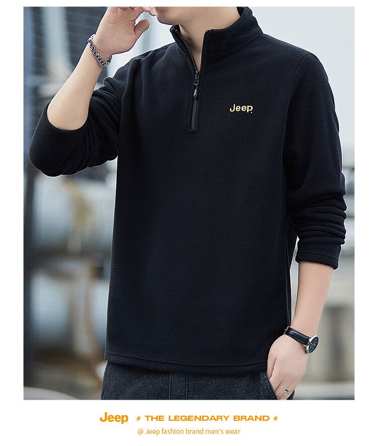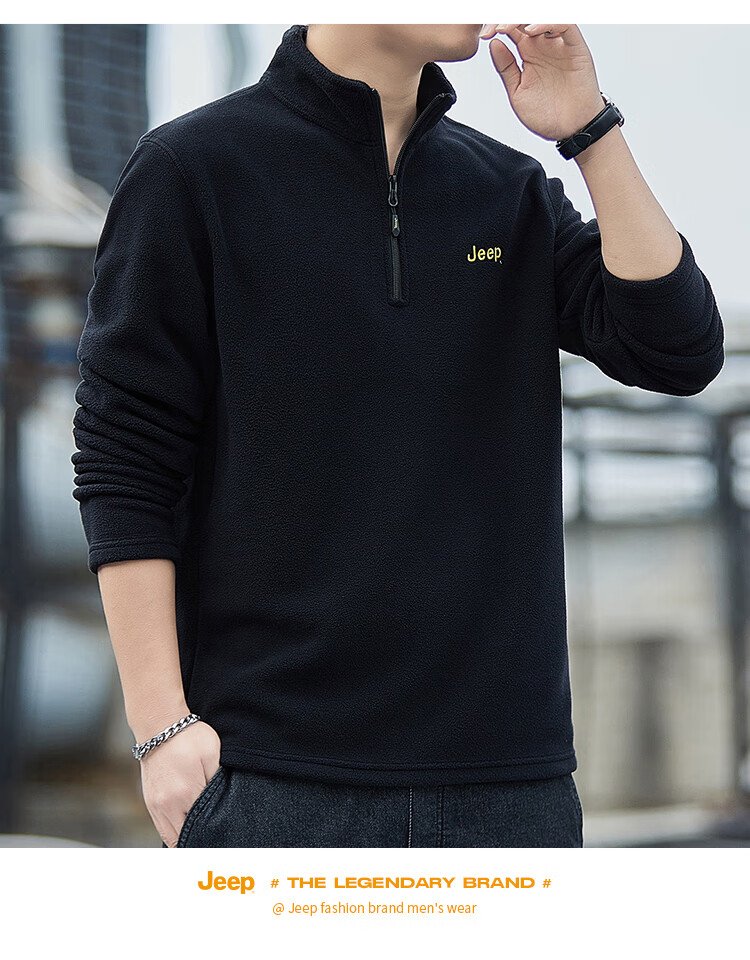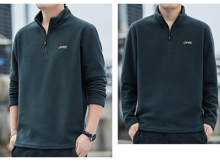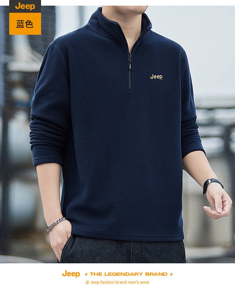 JEEP吉普卫衣男士秋冬季宽松长袖T恤摇粒绒加厚休闲衣服男装 军绿 XL
