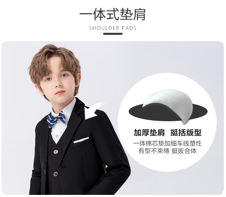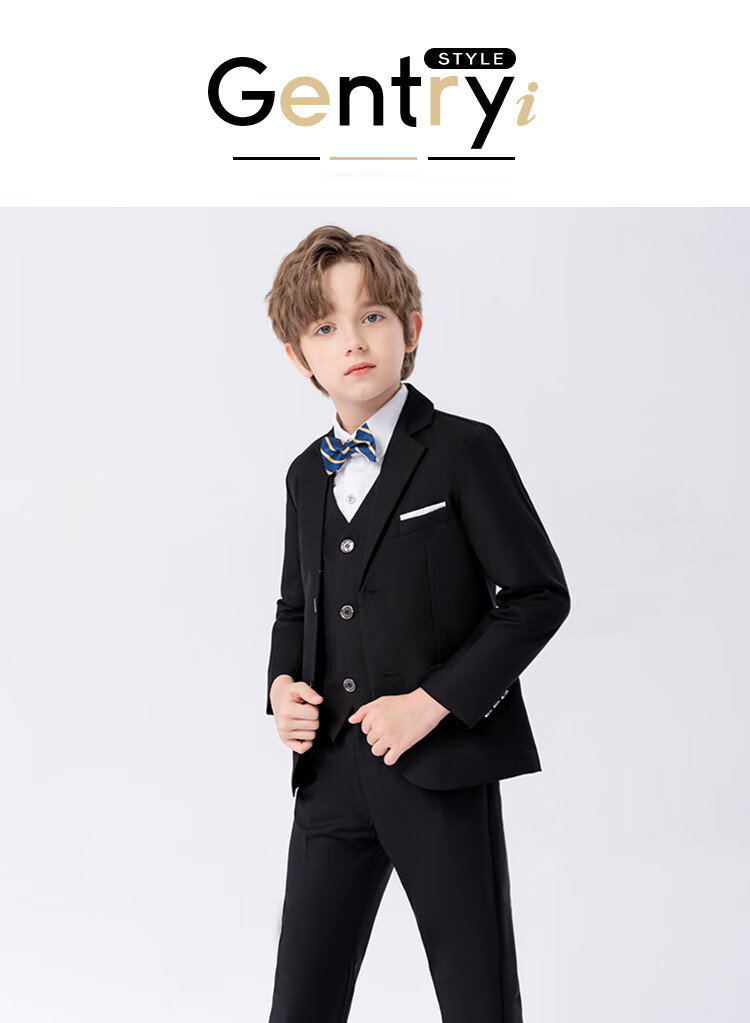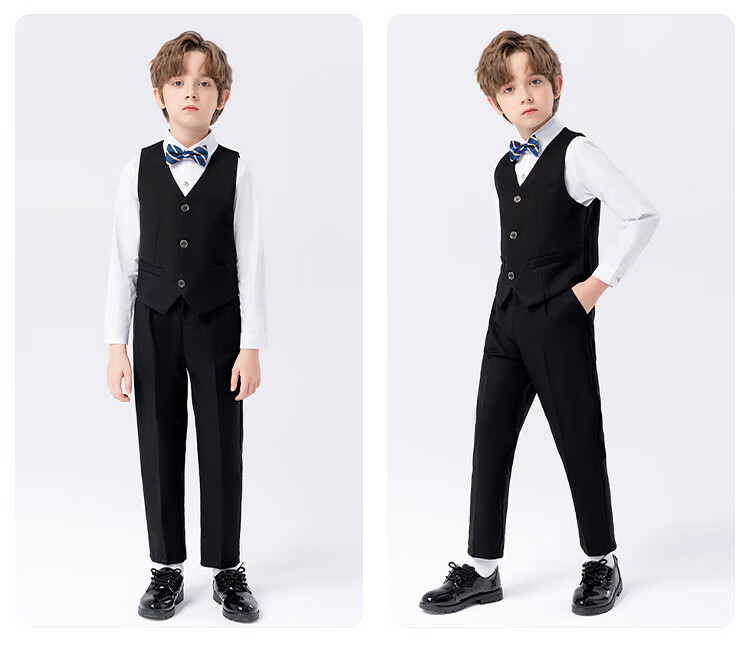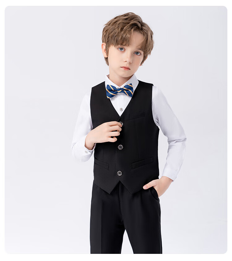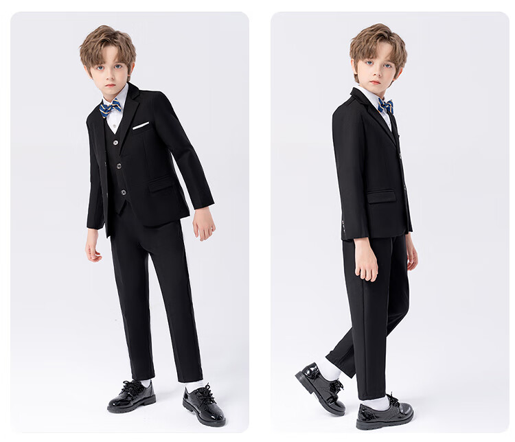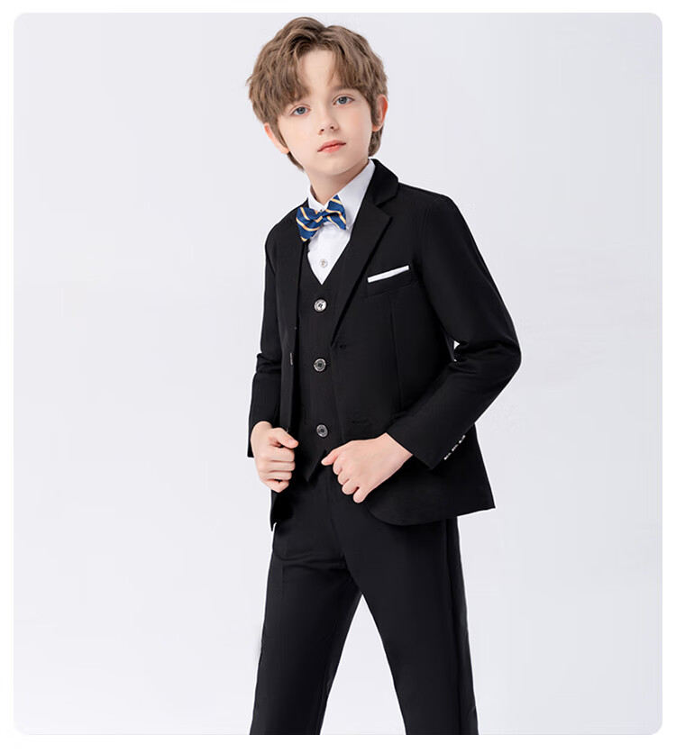萝卜呗呗(LUOBOBEIBEI)儿童西装男童纯色西服花童中小童礼服套装 黑色五件套 140