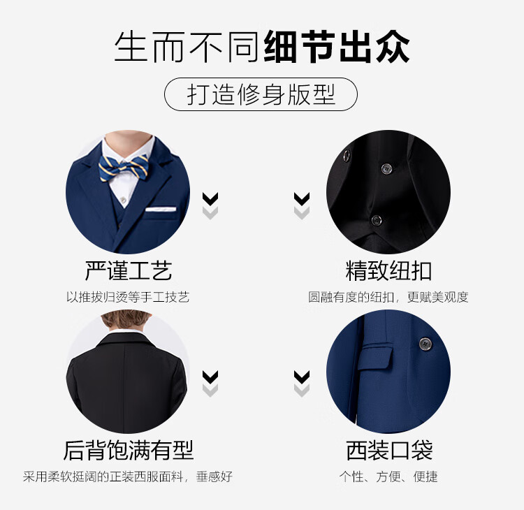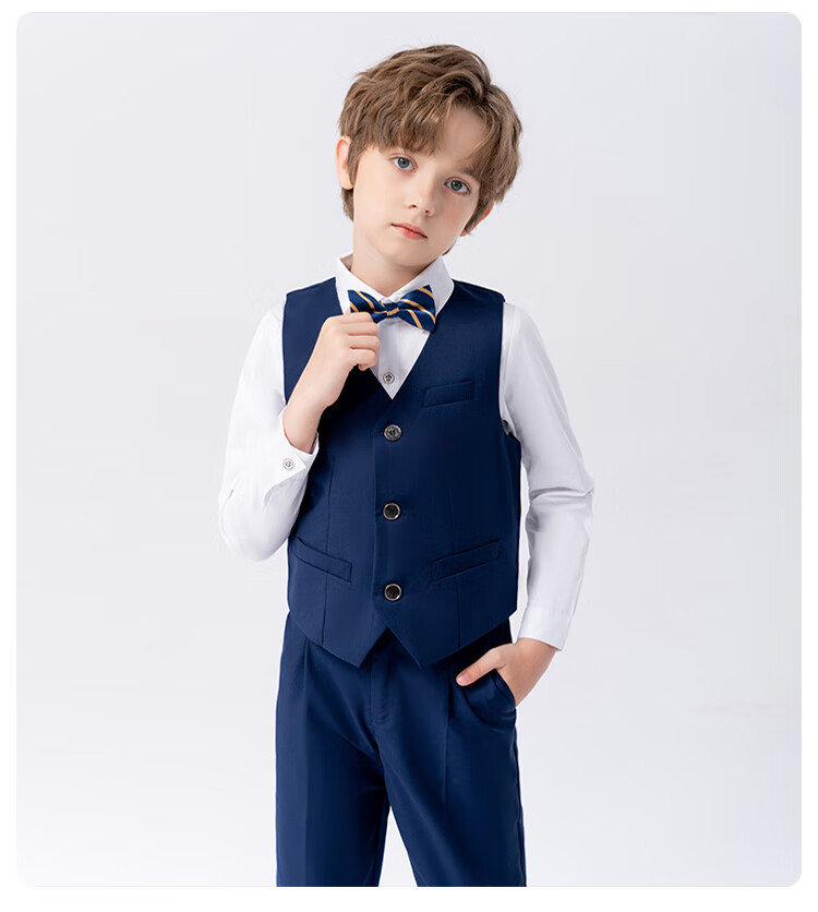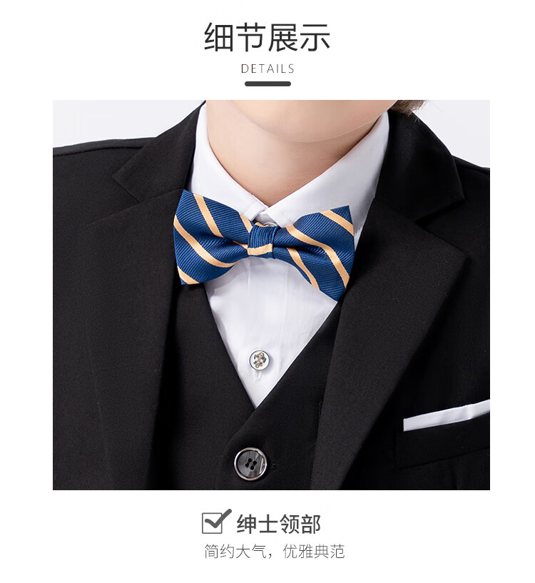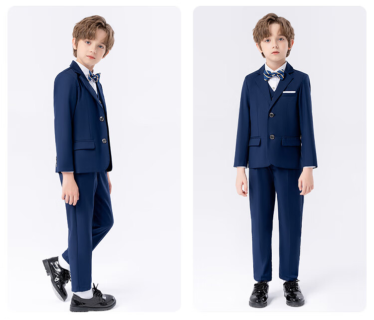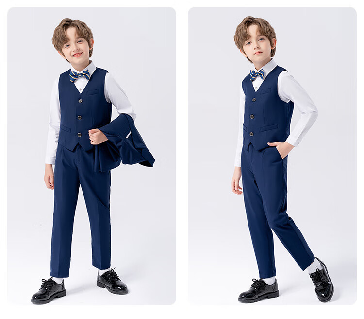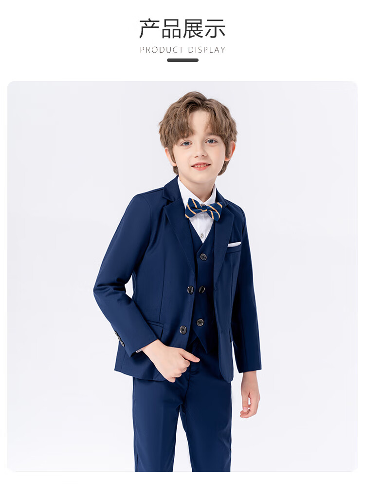 萝卜呗呗(LUOBOBEIBEI)儿童西装男童纯色西服花童中小童礼服套装 黑色五件套 140