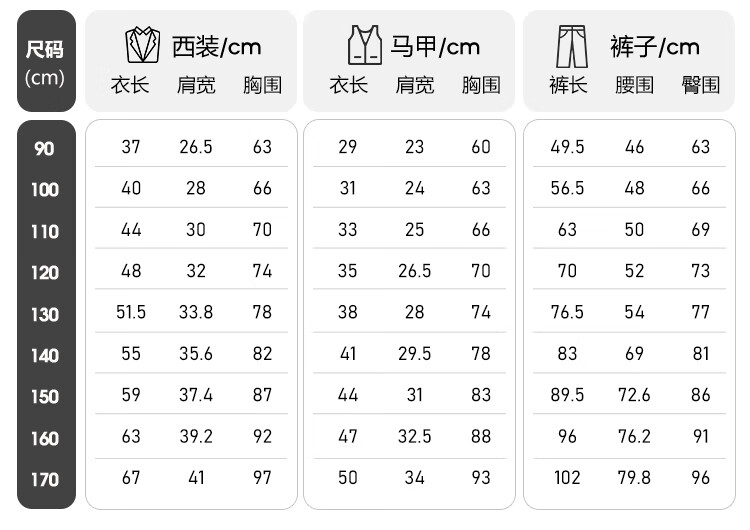 China (cm) 160-165/84-86 165-170 / 88-90 167-172 / 92-96 168-173 / 98-102 170-176 / 106-110