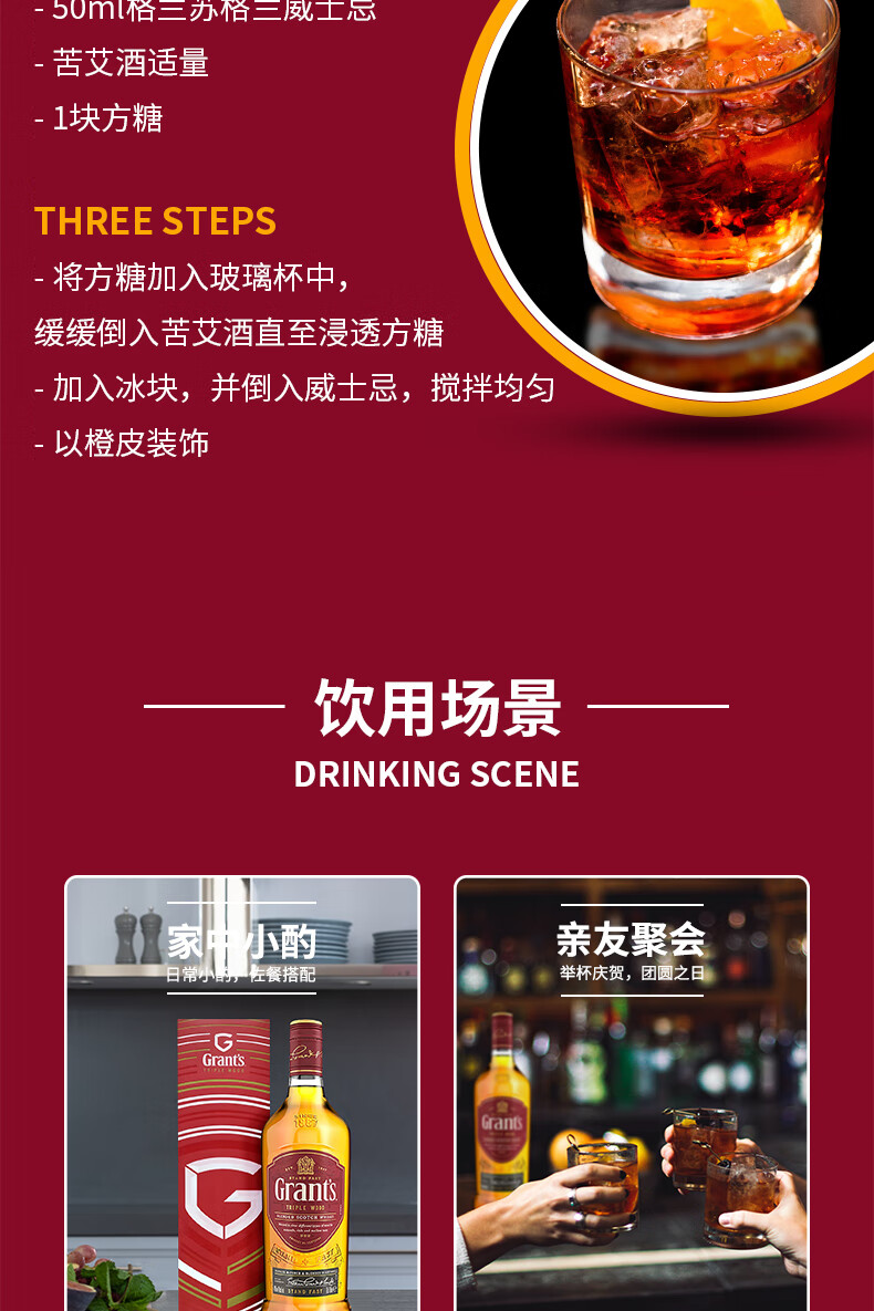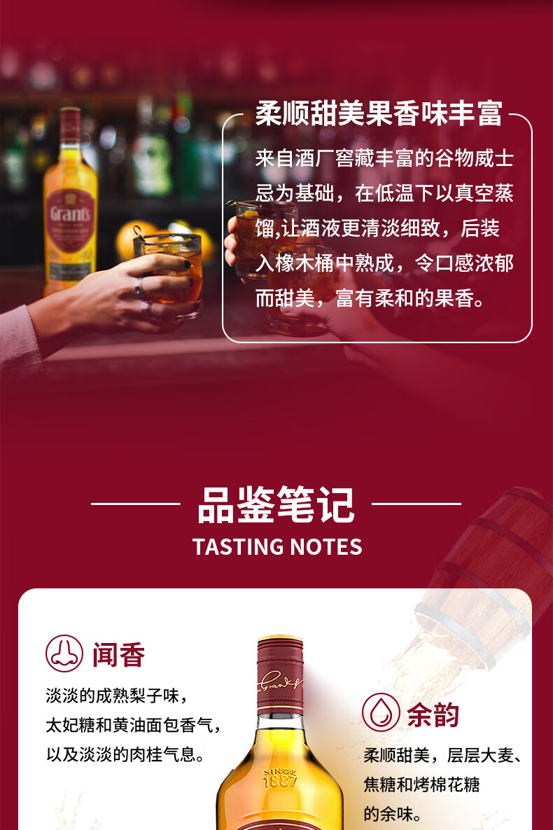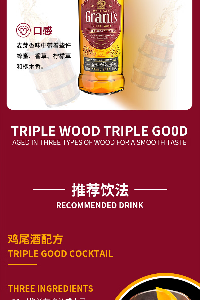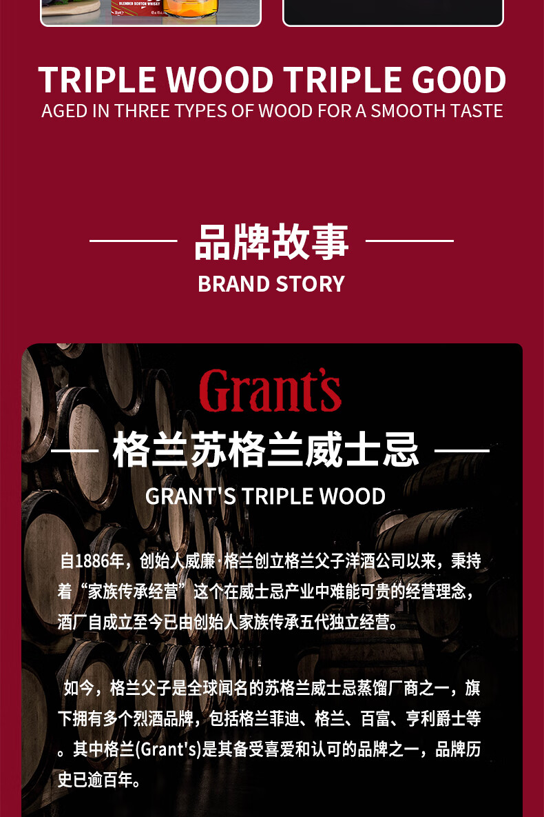 格兰(Grant's)三桶 苏格兰调和威士忌 700ml 40度 礼盒装 进口洋酒