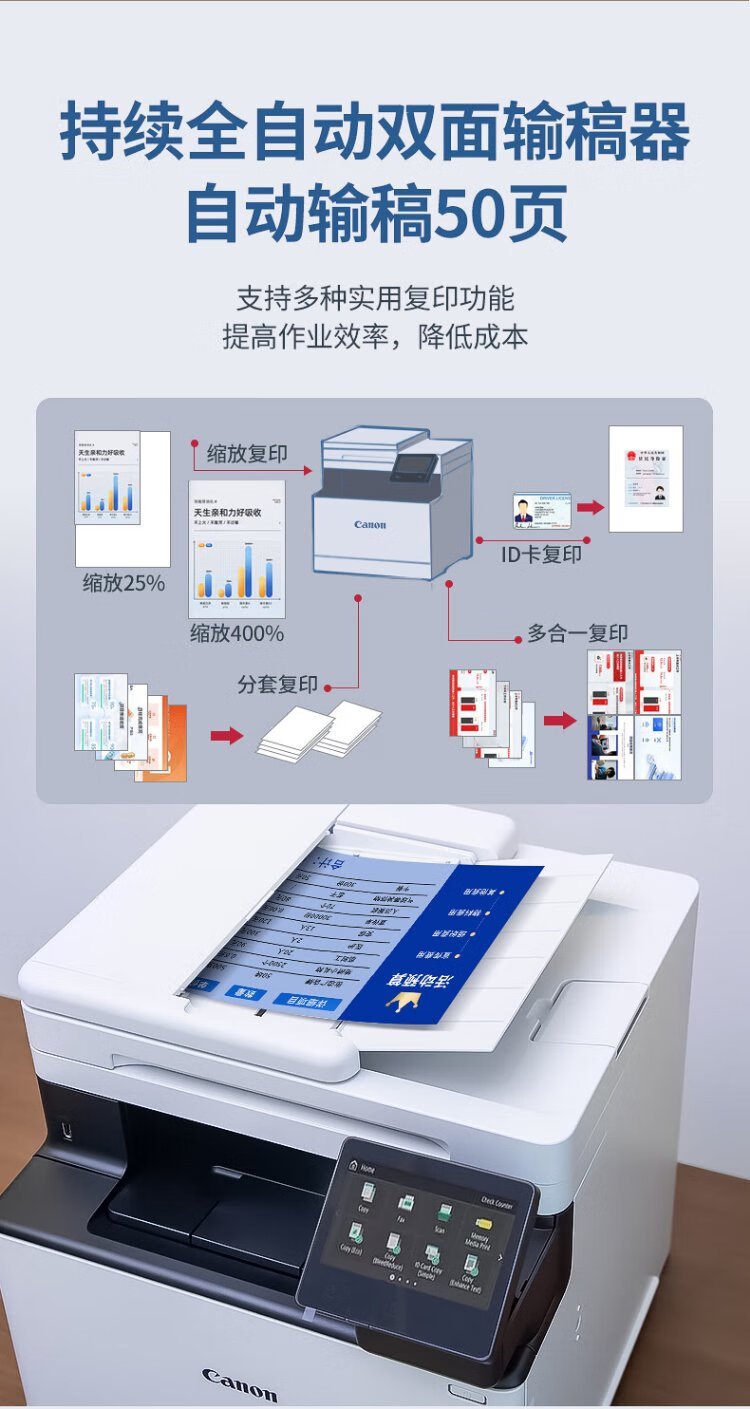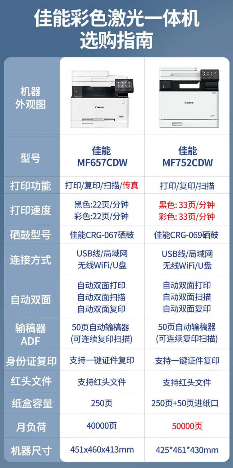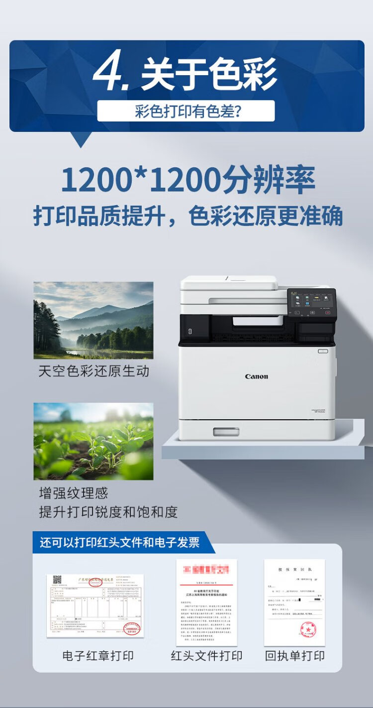 佳能(Canon) MF752Cdw A4幅面彩色激光打印机多功能一体机 办公商用自动双面打印 打印复印扫描无线三合一