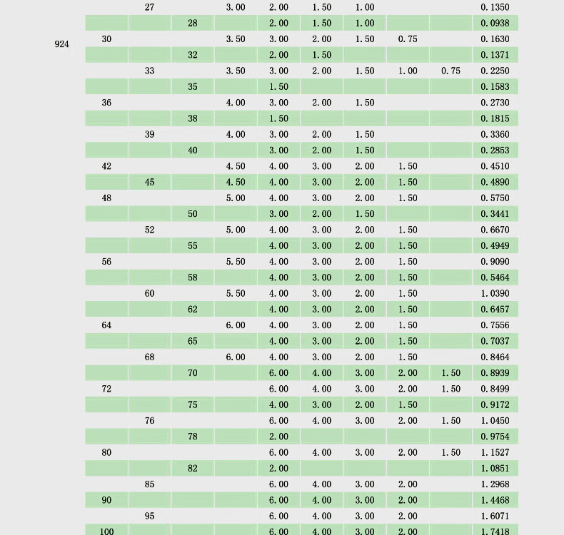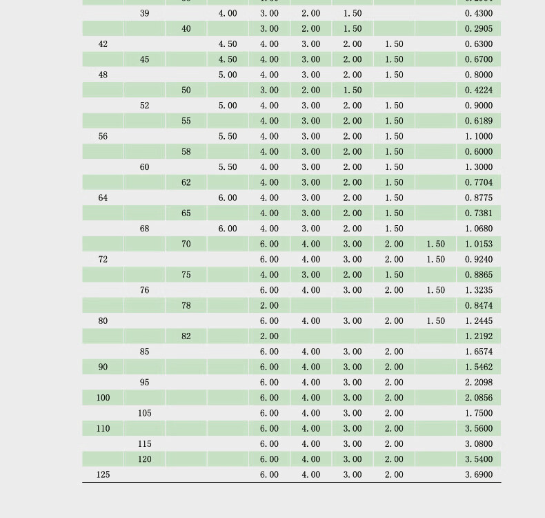 76.2 81.3 86.4 91.5 96.5 101.6 106.7 112 117 122 127 132 137 142