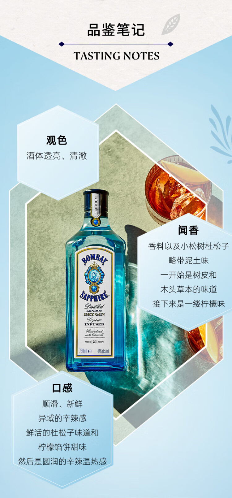 孟买蓝宝石(Bombay) 洋酒 金酒 杜松子酒 琴酒 750ml