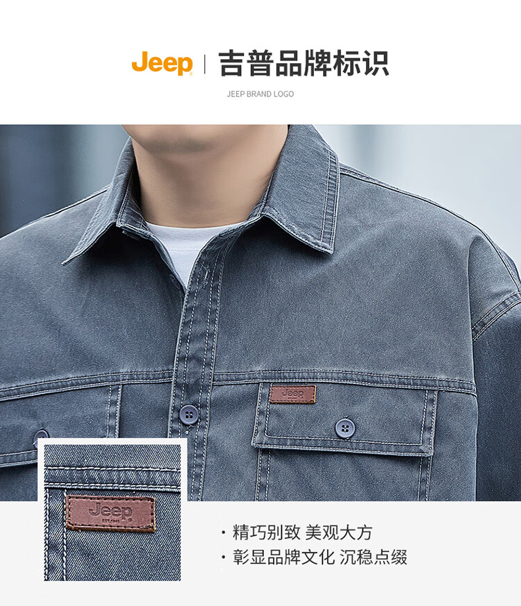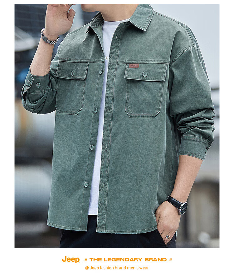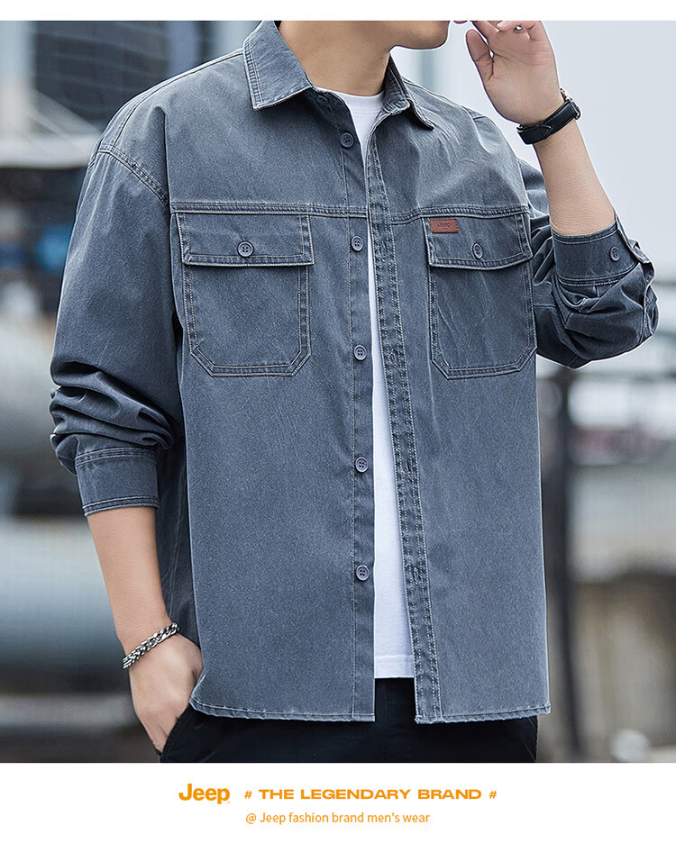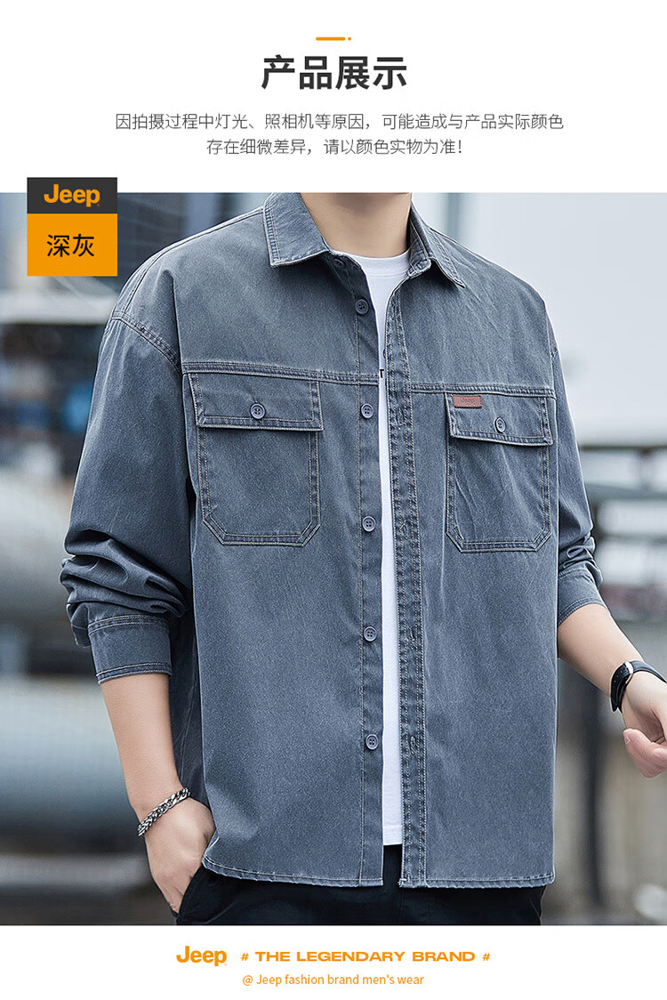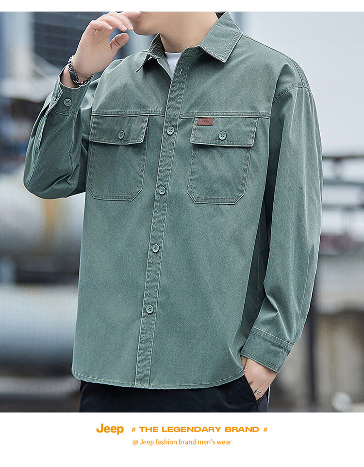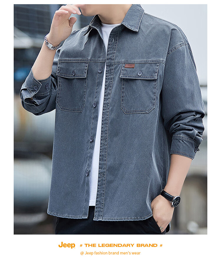 JEEP Jeep shirt men's long-sleeved autumn and winter casual loose jacket work wear trendy shirt men's dark gray 2XL