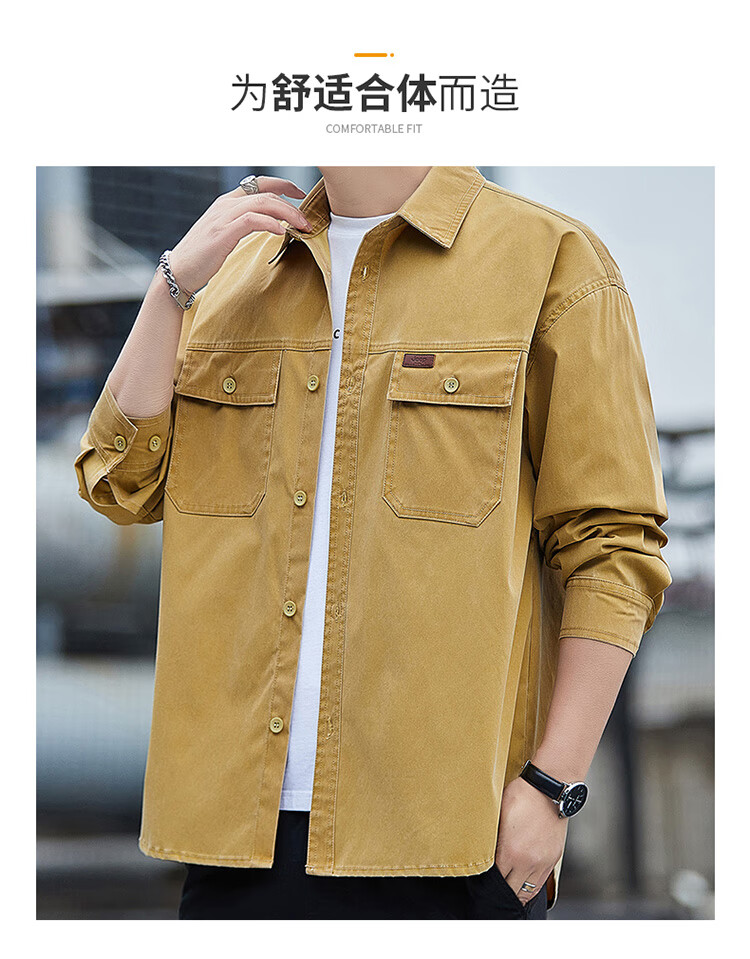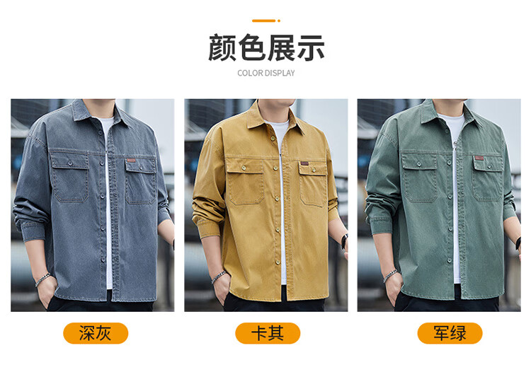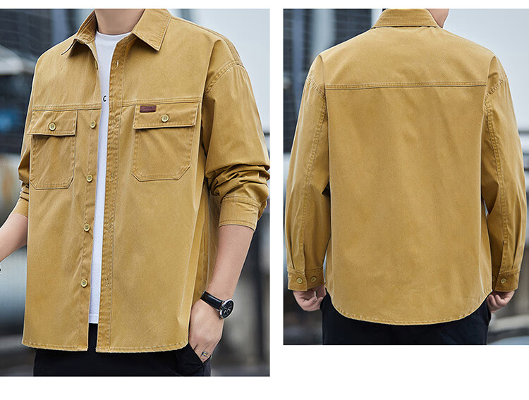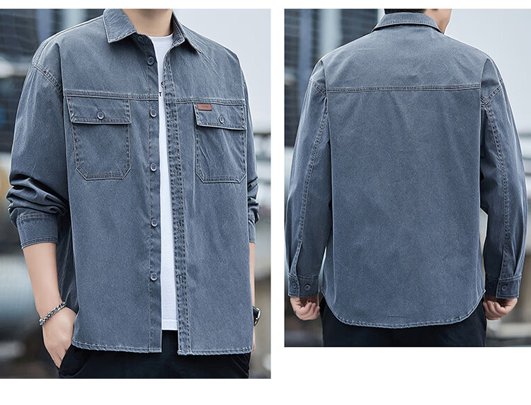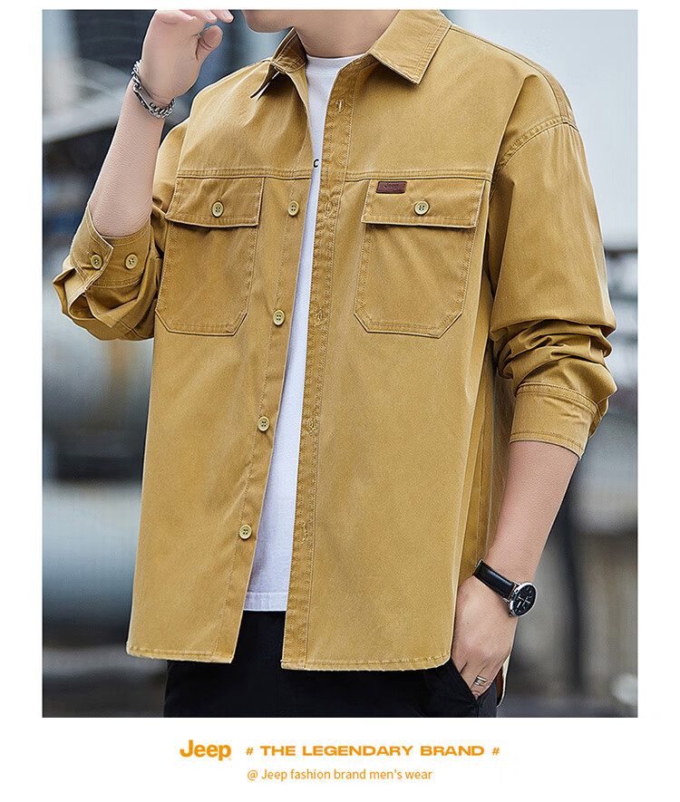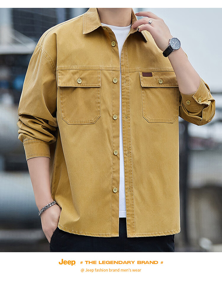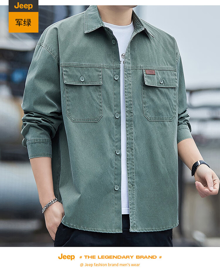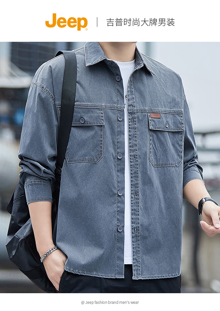JEEP Jeep shirt men's long-sleeved autumn and winter casual loose jacket work wear trendy shirt men's dark gray 2XL