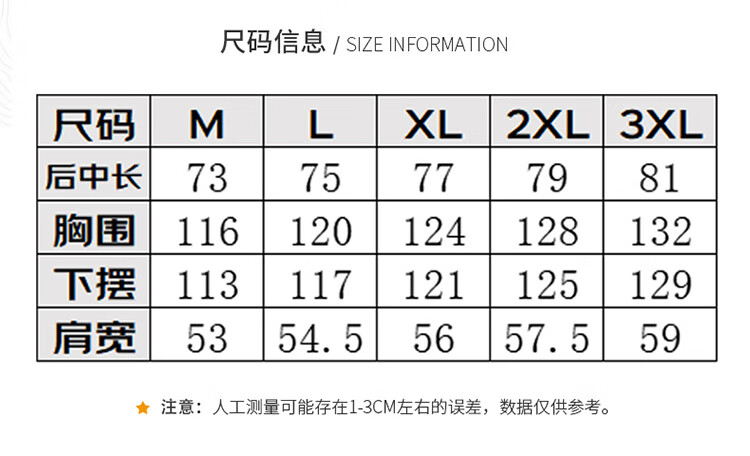China (cm) 165 / 88-90 170 / 96-98 175 / 108-110 180 / 118-122 185 / 126-130