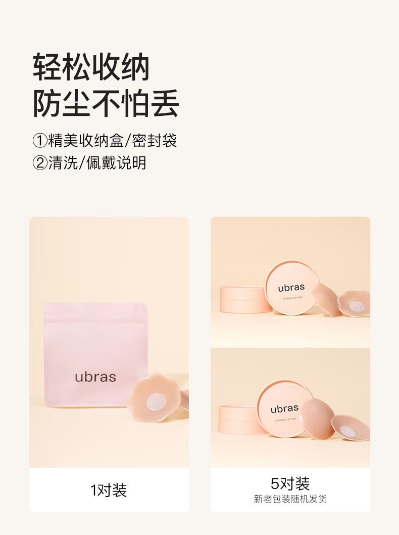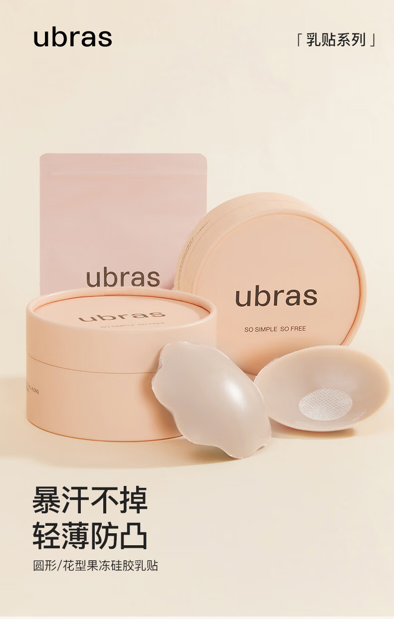 Ubras5 pair of seamless anti-lighting silicone breast stickers for women's wedding dresses, non-slip and anti-bulges, special for small breasts, round*5