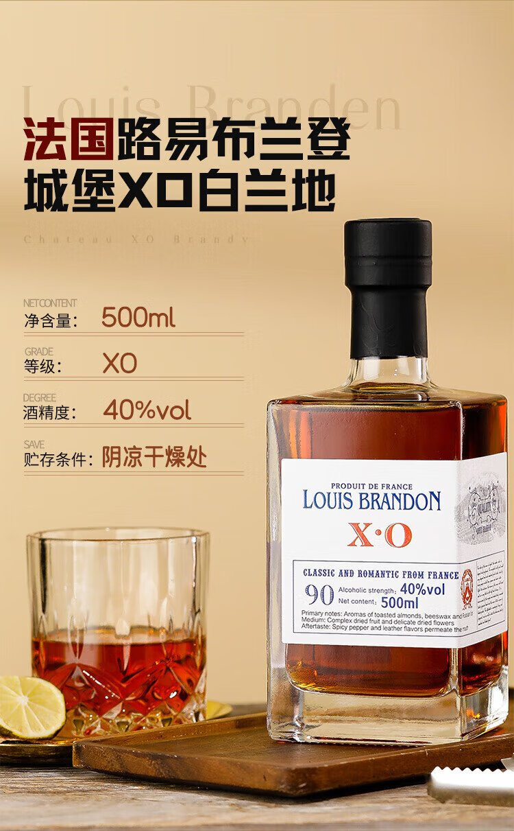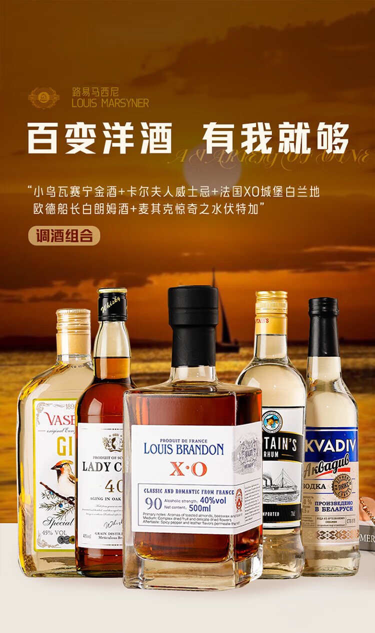 路易布兰登(LOUIS BRANDON)威士忌白兰地朗姆金酒伏特加洋酒5瓶调酒基酒鸡尾酒组合原酒进口