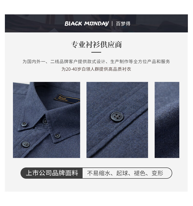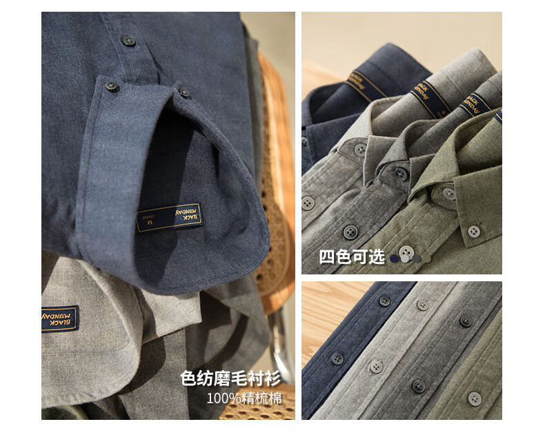 BLACKMONDAY pure cotton color spun long-sleeved shirt for men 2025 spring and autumn pure cotton high-end men's casual business shirt