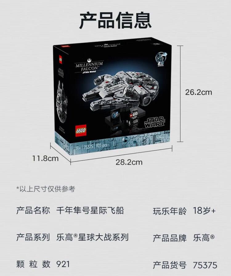 乐高(LEGO)积木拼装星球大战75375 千年隼号星际飞船男孩玩具生日圣诞礼物