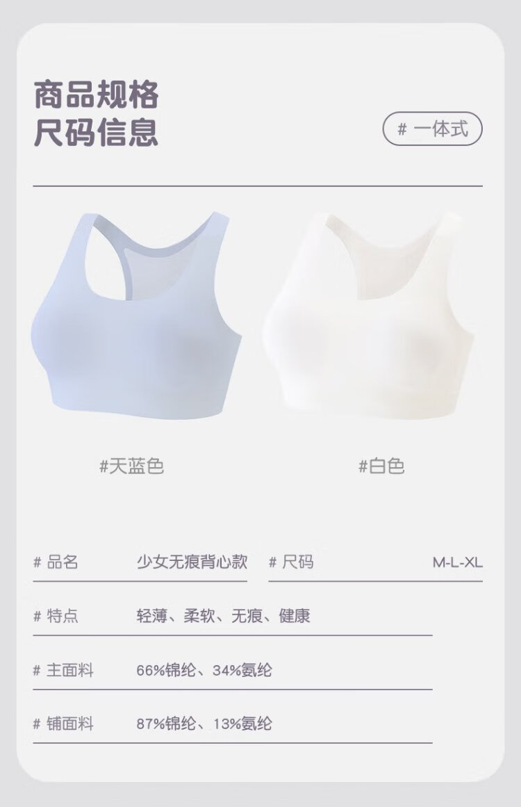 爱莉儿&欧萝拉少女内衣女童发育期12-16岁学生青春期女孩初中生小背心6251肤L