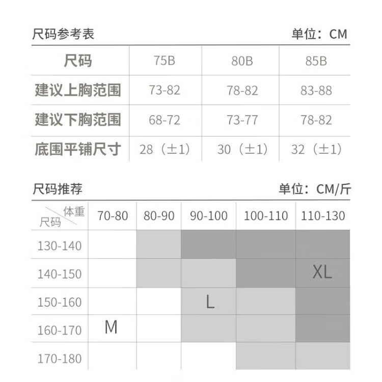China (cm) 160-165/84-86 165-170 / 88-90 167-172 / 92-96 168-173 / 98-102 170-176 / 106-110
