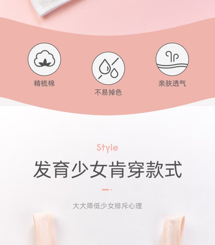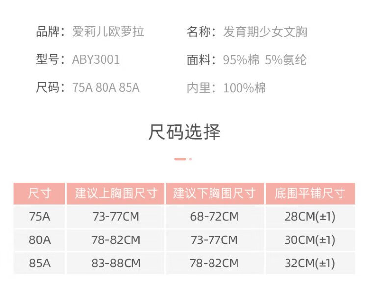 爱莉儿&欧萝拉2件儿童内衣14岁初发育期防凸点小学生初中纯棉女童小背心80A