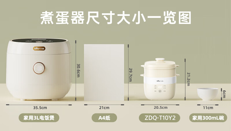 Bear egg cooker, egg steamer, hot spring egg machine, intelligent timer and automatic power off, egg cooker, soft-boiled eggs, tea eggs, small steamer breakfast all-in-one machine ZDQ-T10Y2