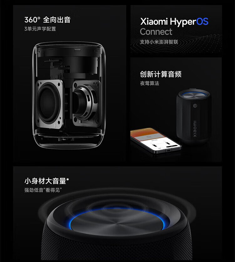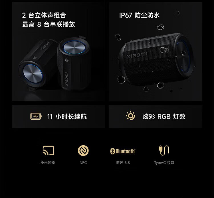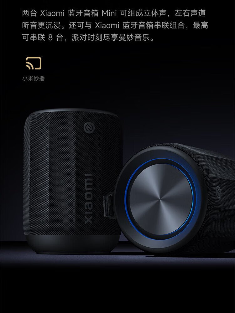 Xiaomi (MI) Xiaomi Bluetooth Speaker Mini Black Portable Hi-Fi Speaker Acoustic Small Steel Cannon Xiaomi ThePaper Smart Outdoor Dustproof and Waterproof Camping NFC Gift