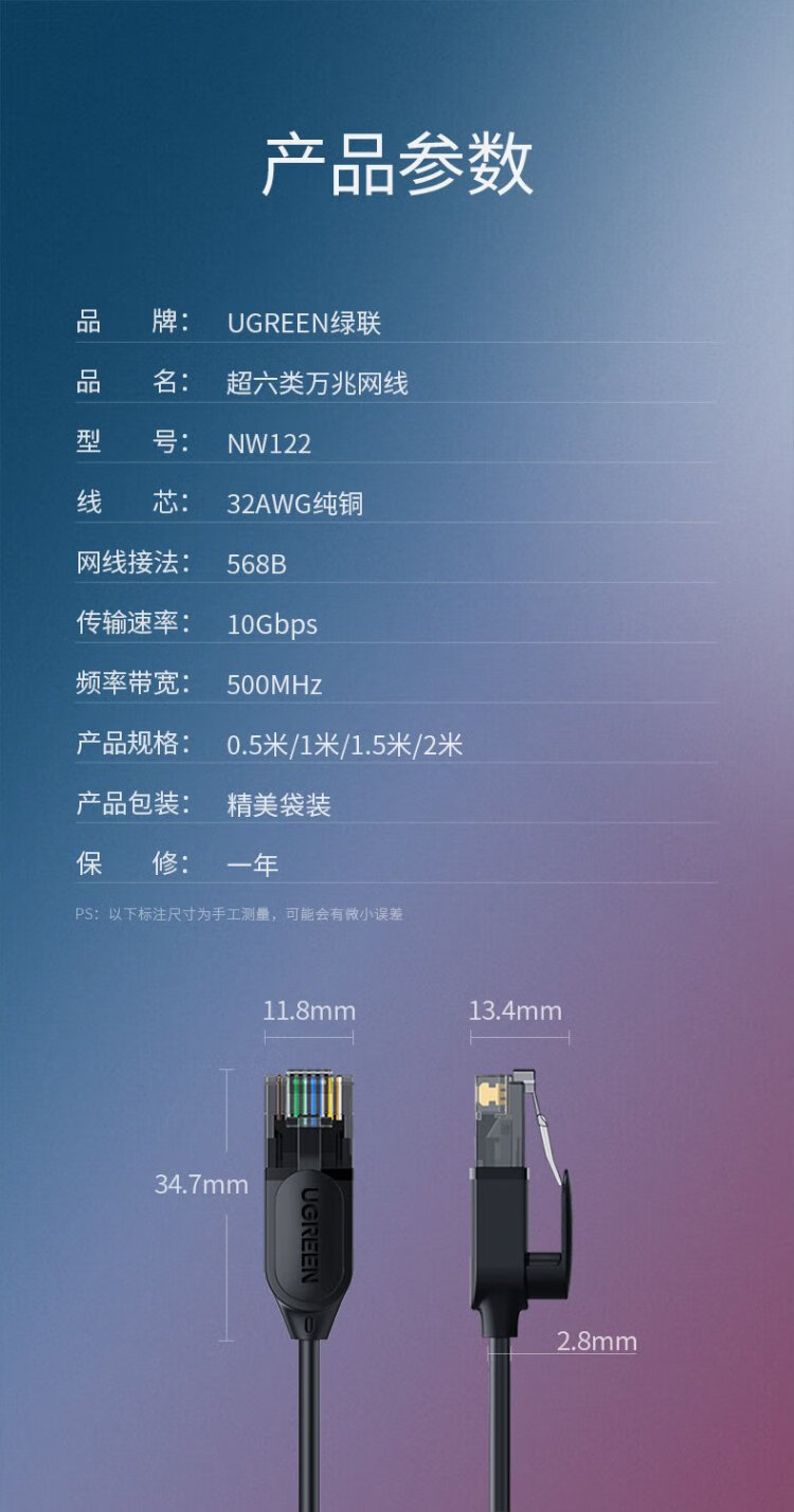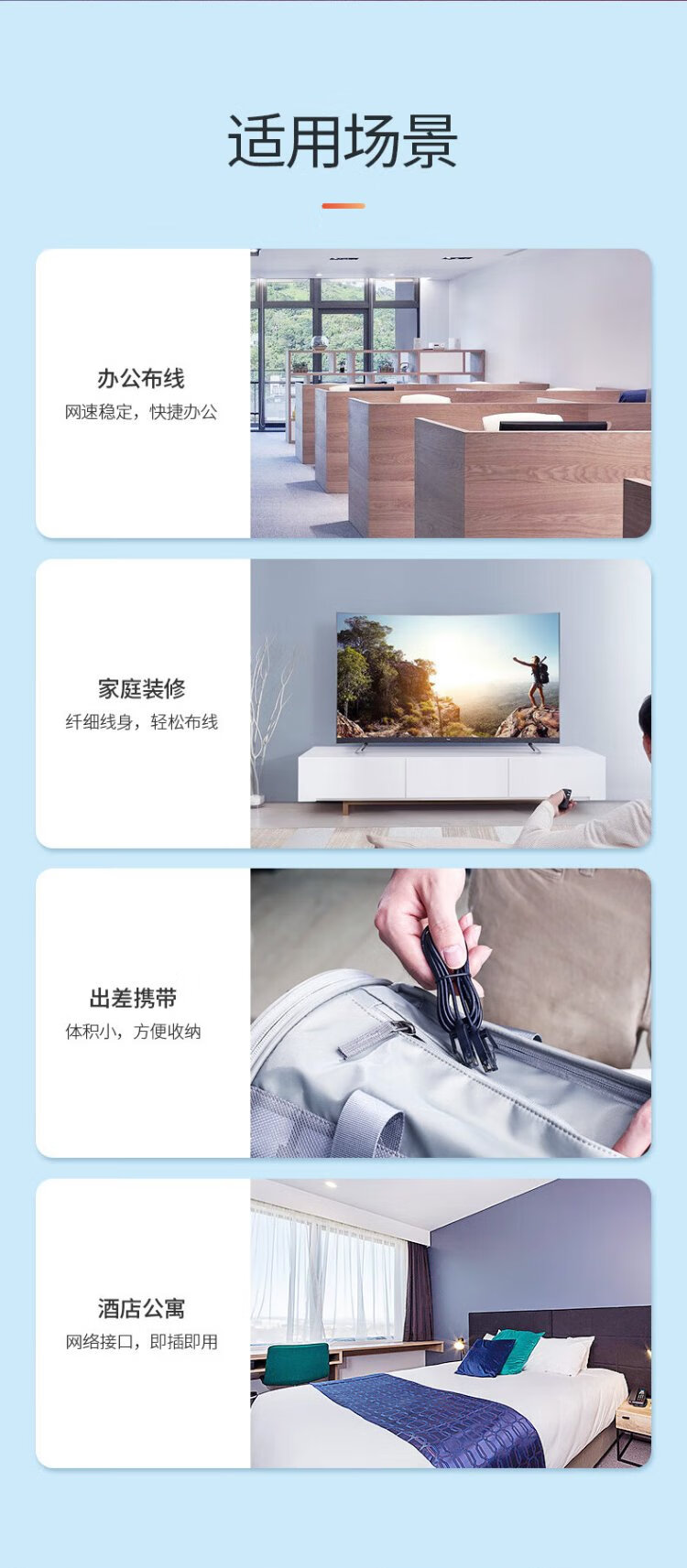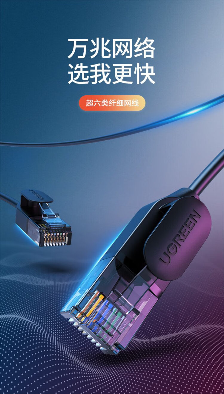 Greenlink Category 6 Super network cable thin wire CAT6A pure copper 10G finished jumper home computer router optical cat network cable compatible with Gigabit 5 meters 70654
