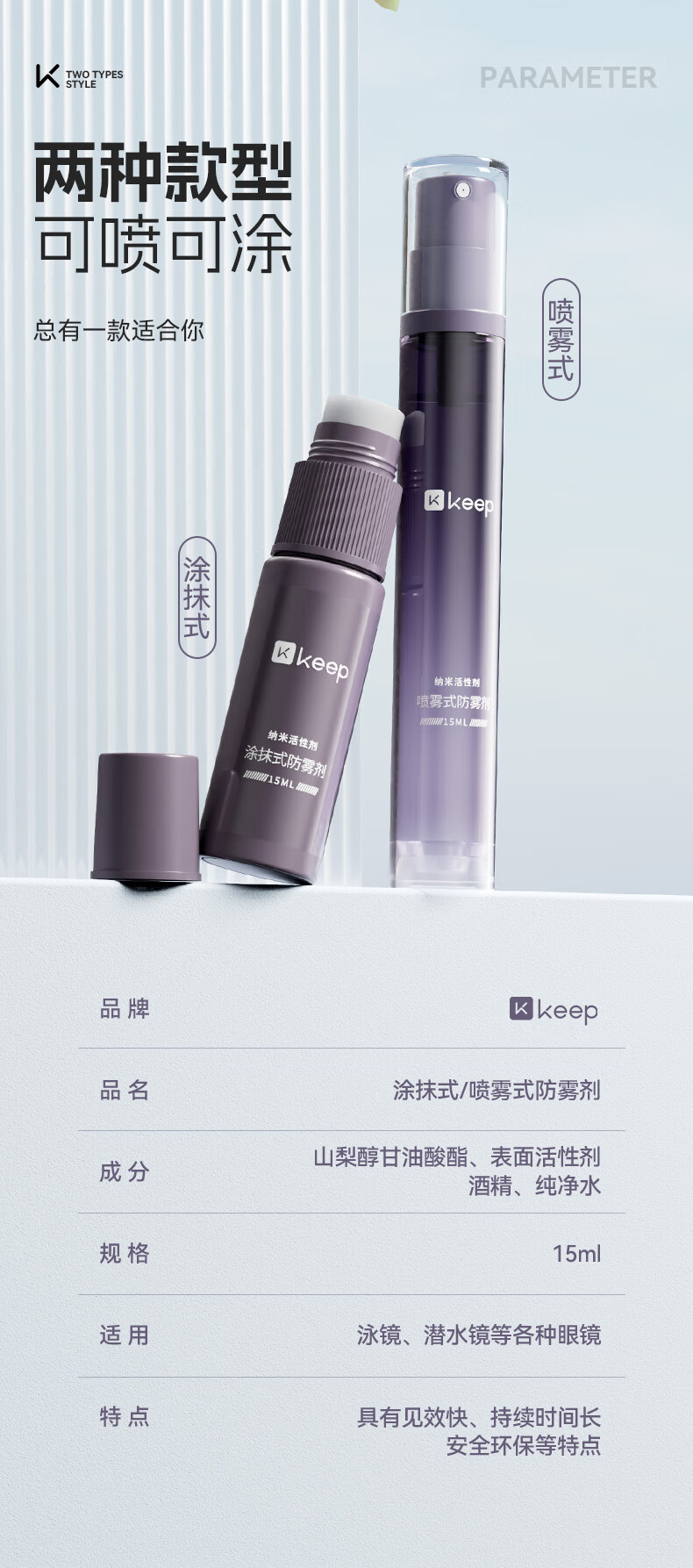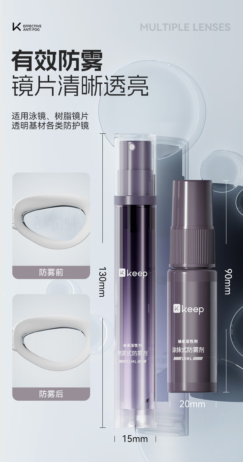 Keep眼镜防雾剂冬天近视镜片除雾剂游泳眼镜专用防起雾15ml喷雾款 900