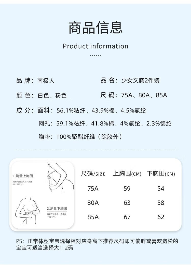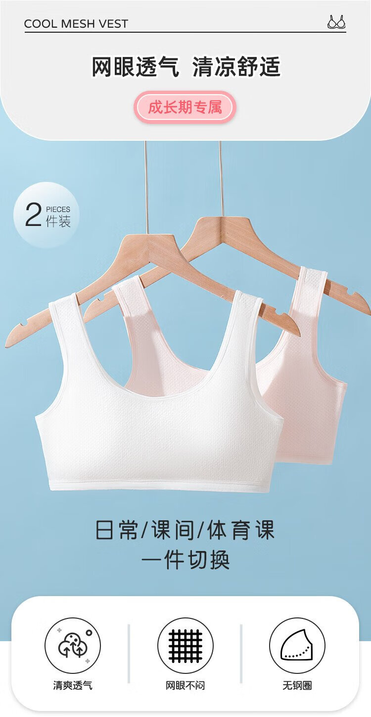 Antarctic children's underwear girls' development period summer mesh vest primary and secondary school girls bra two-pack 75A