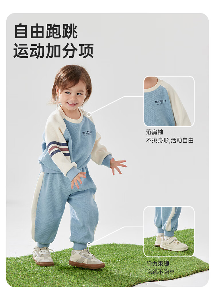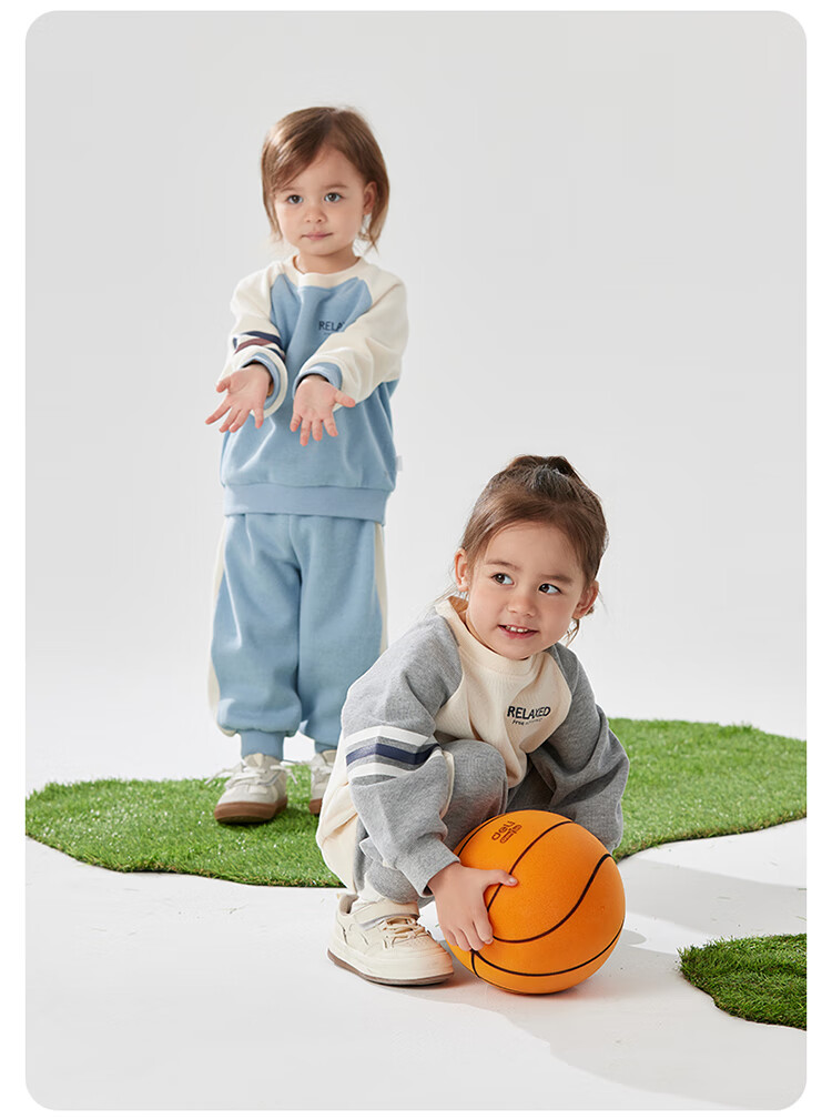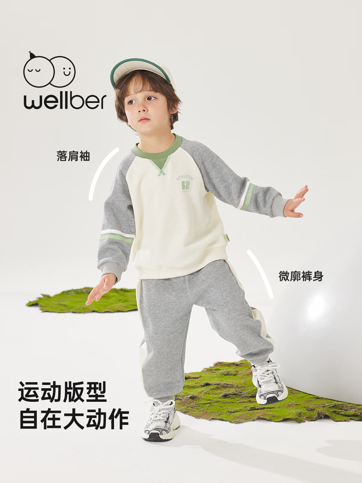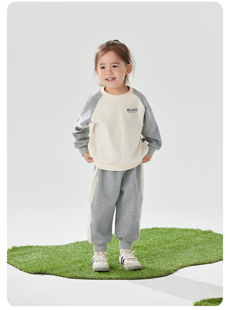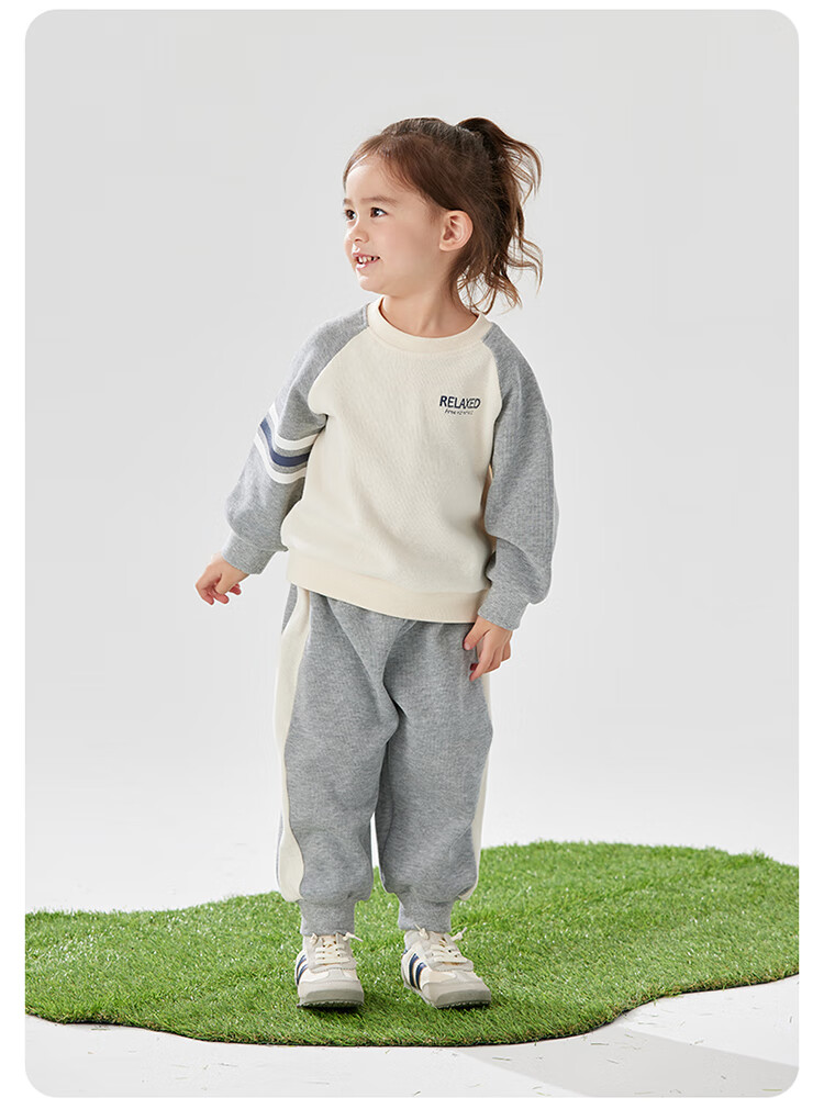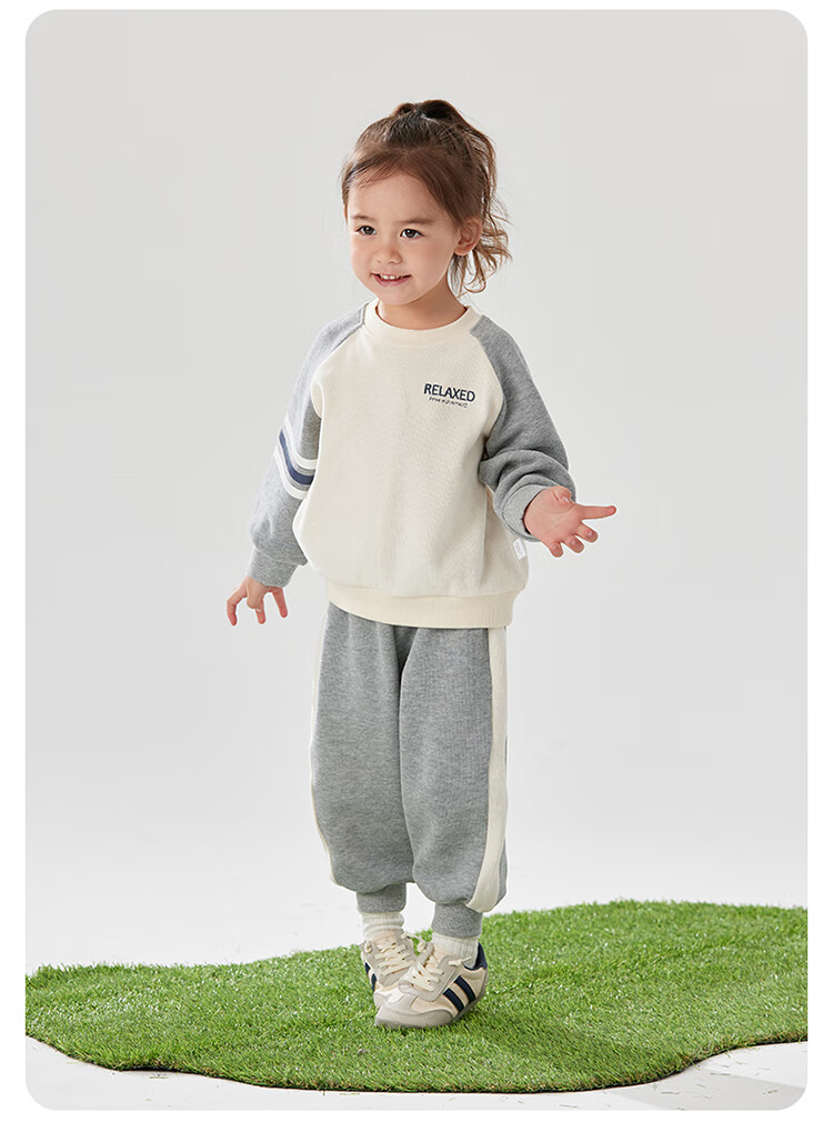 威尔贝鲁(WELLBER)儿童套装男女童装宝宝卫衣裤运动风洋气衣服25年春 麻灰110cm