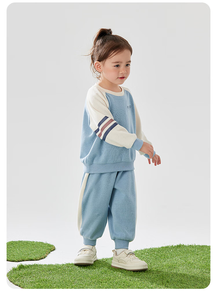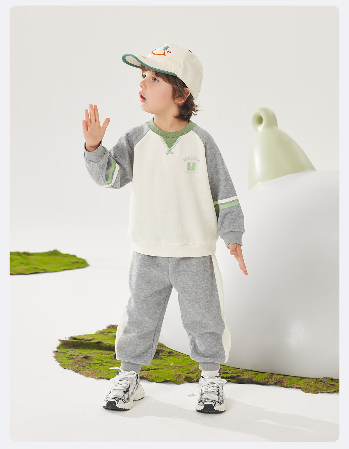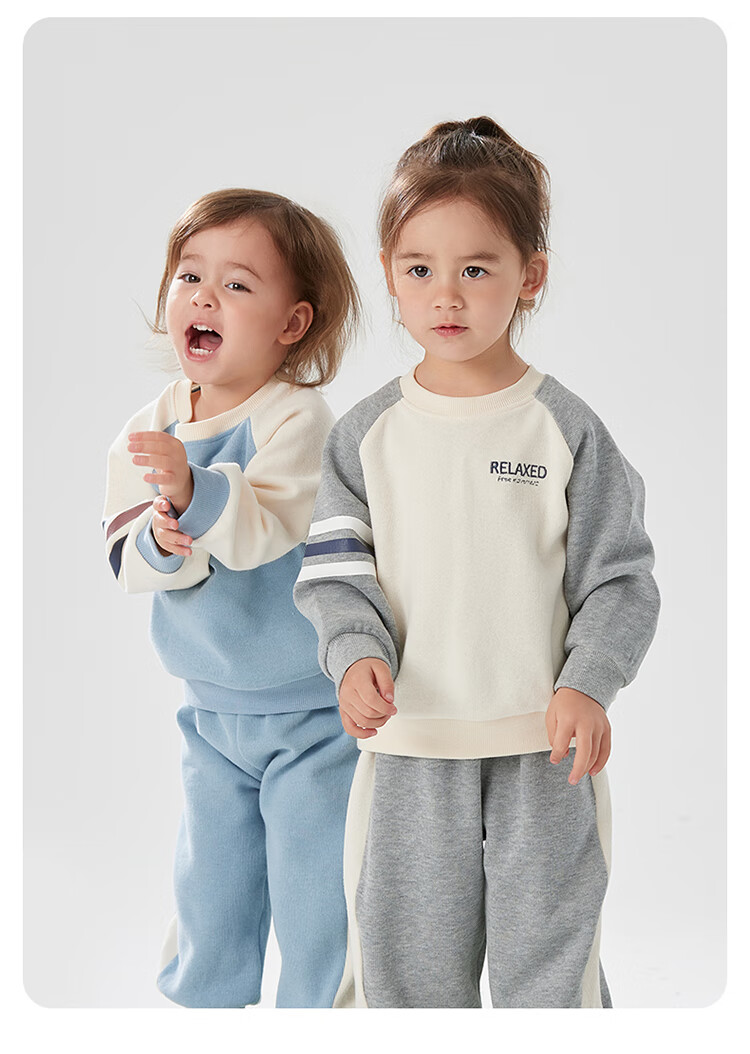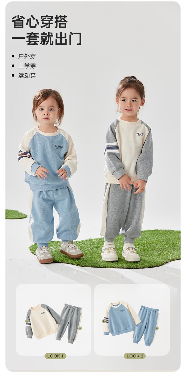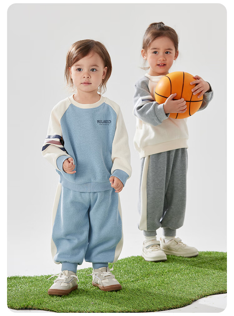 威尔贝鲁(WELLBER)儿童套装男女童装宝宝卫衣裤运动风洋气衣服25年春 麻灰110cm