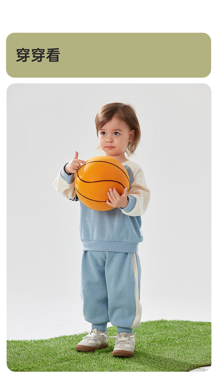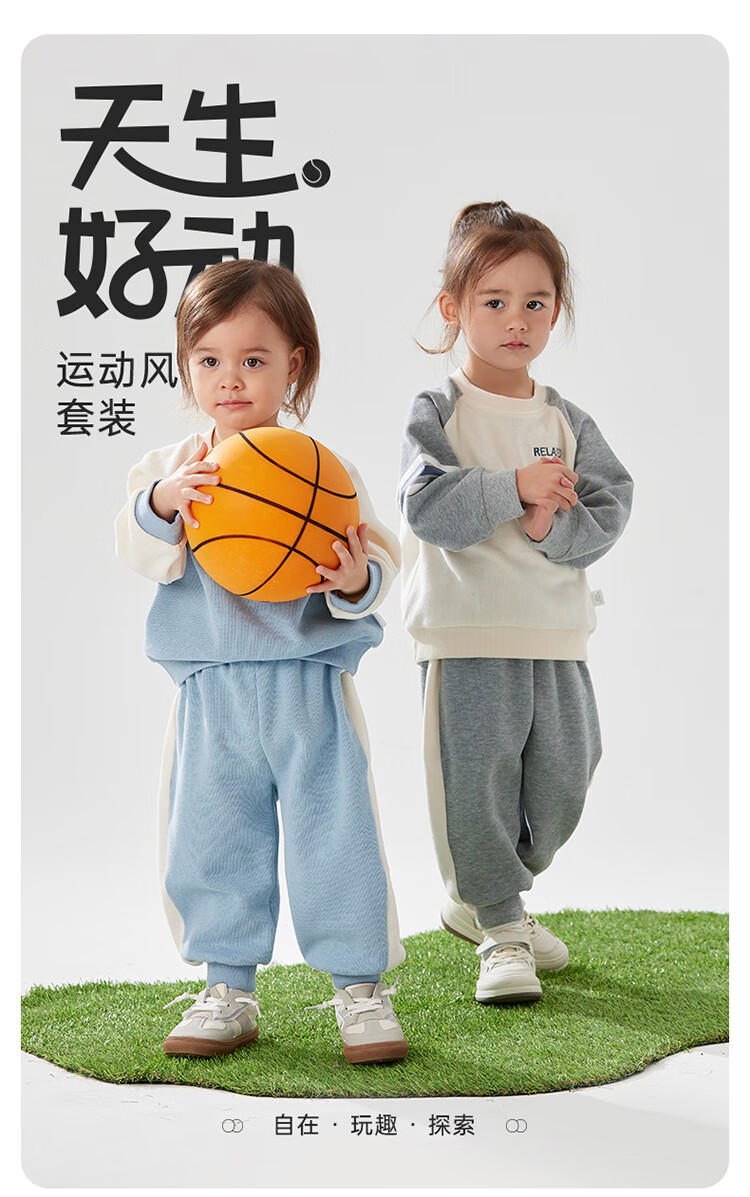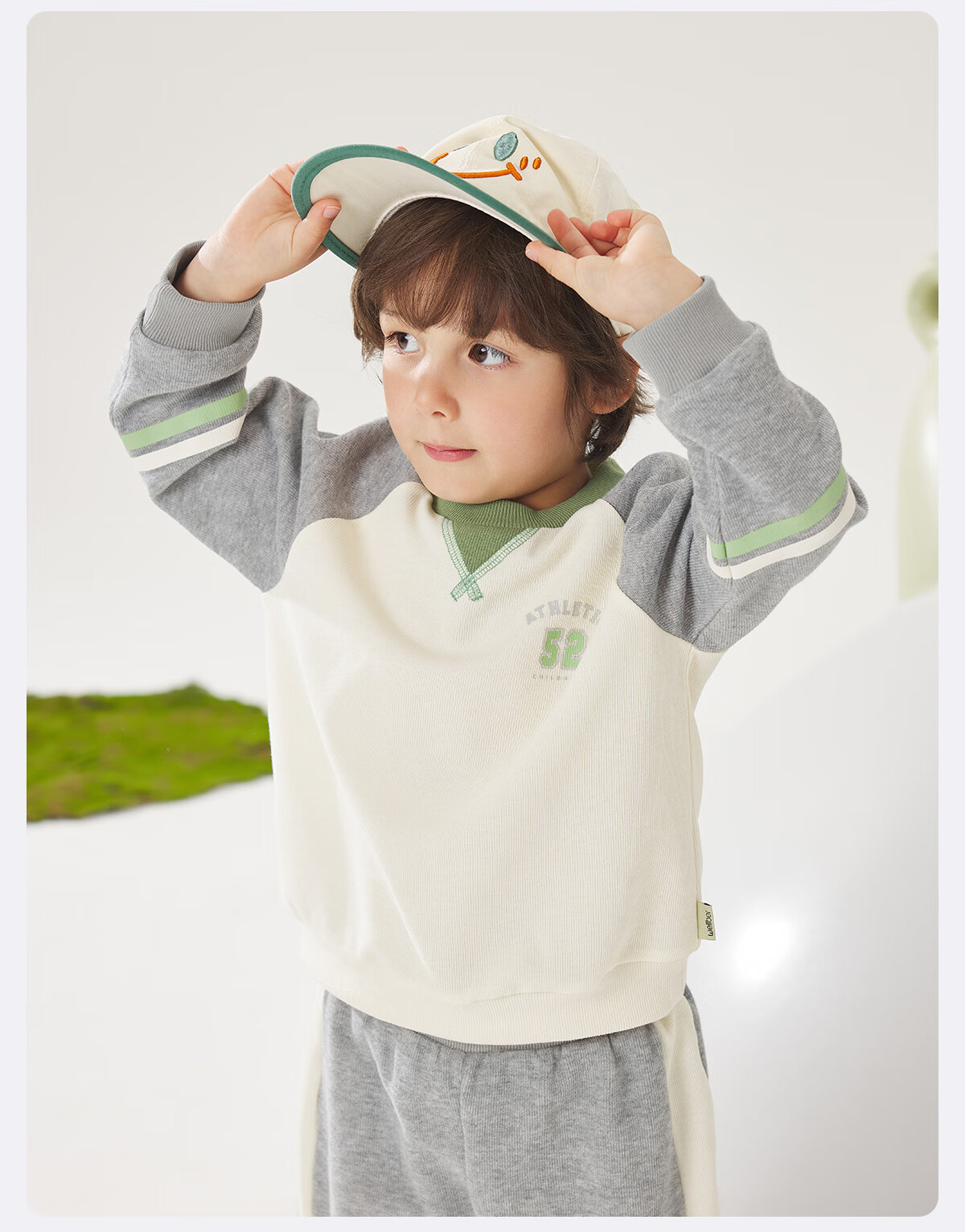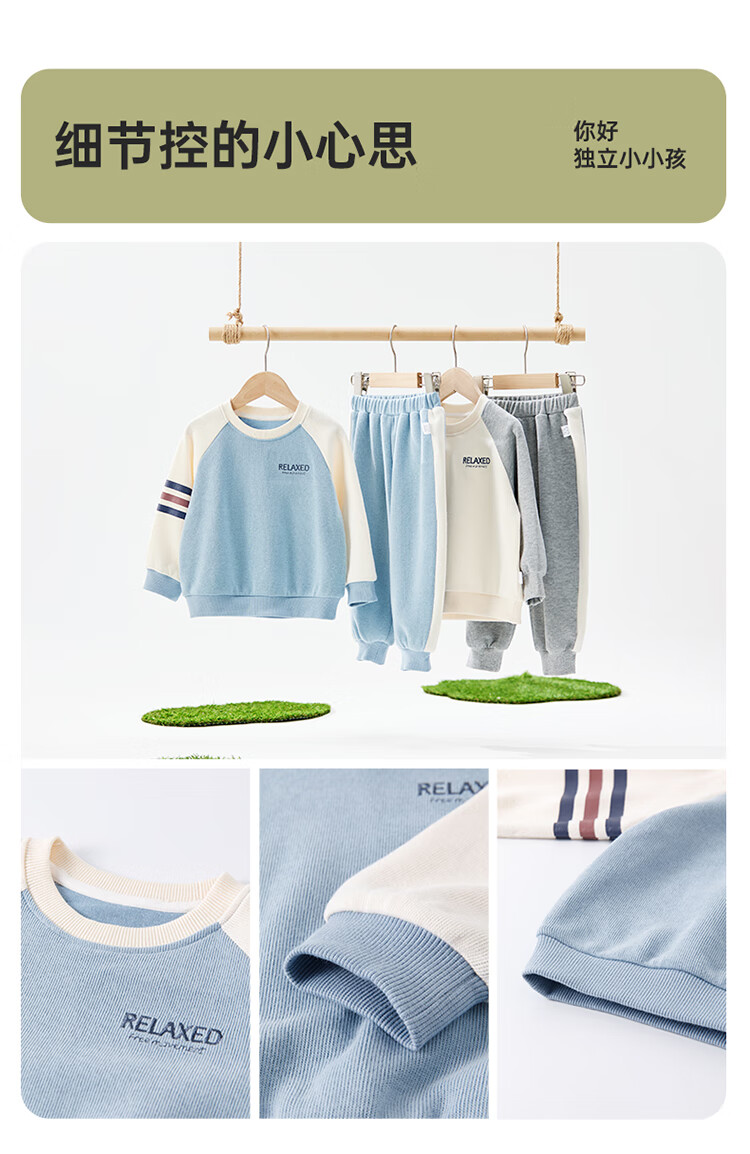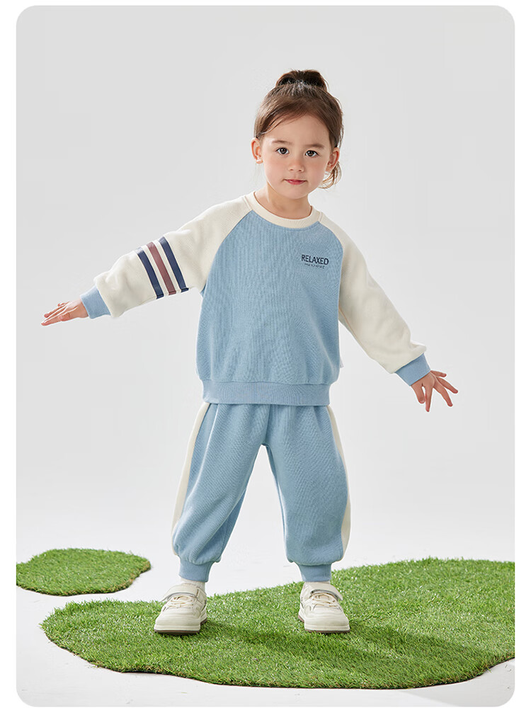 威尔贝鲁(WELLBER)儿童套装男女童装宝宝卫衣裤运动风洋气衣服25年春 麻灰110cm