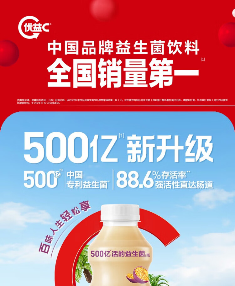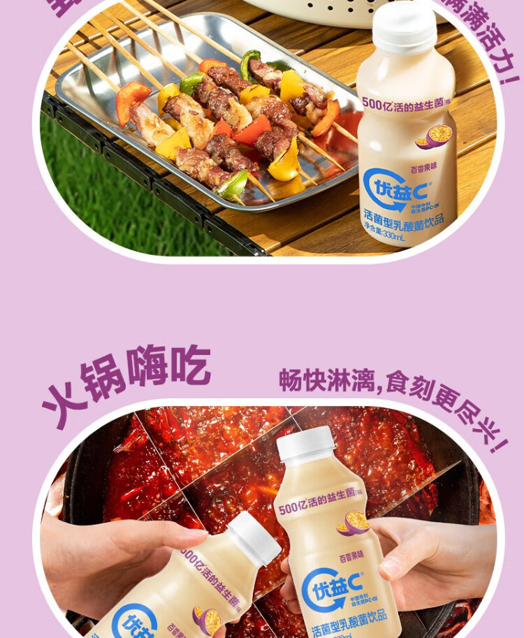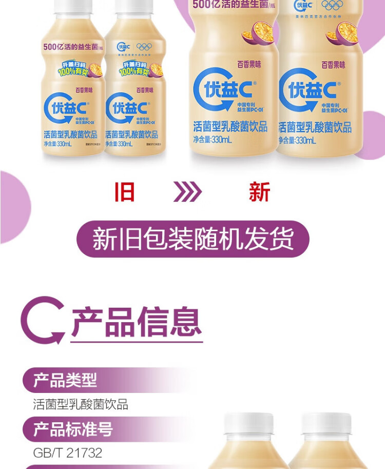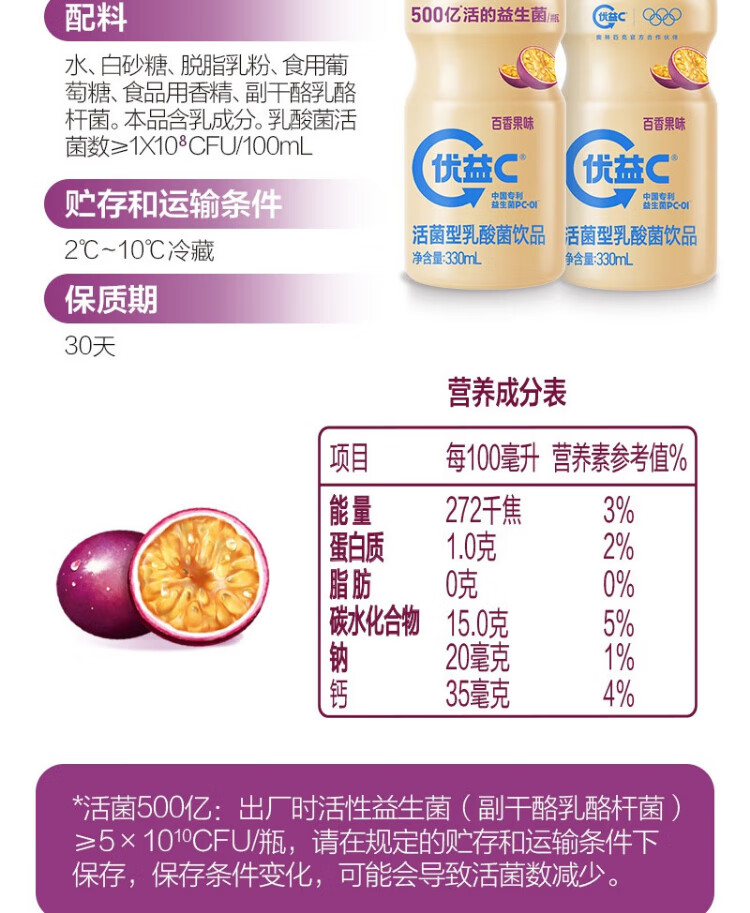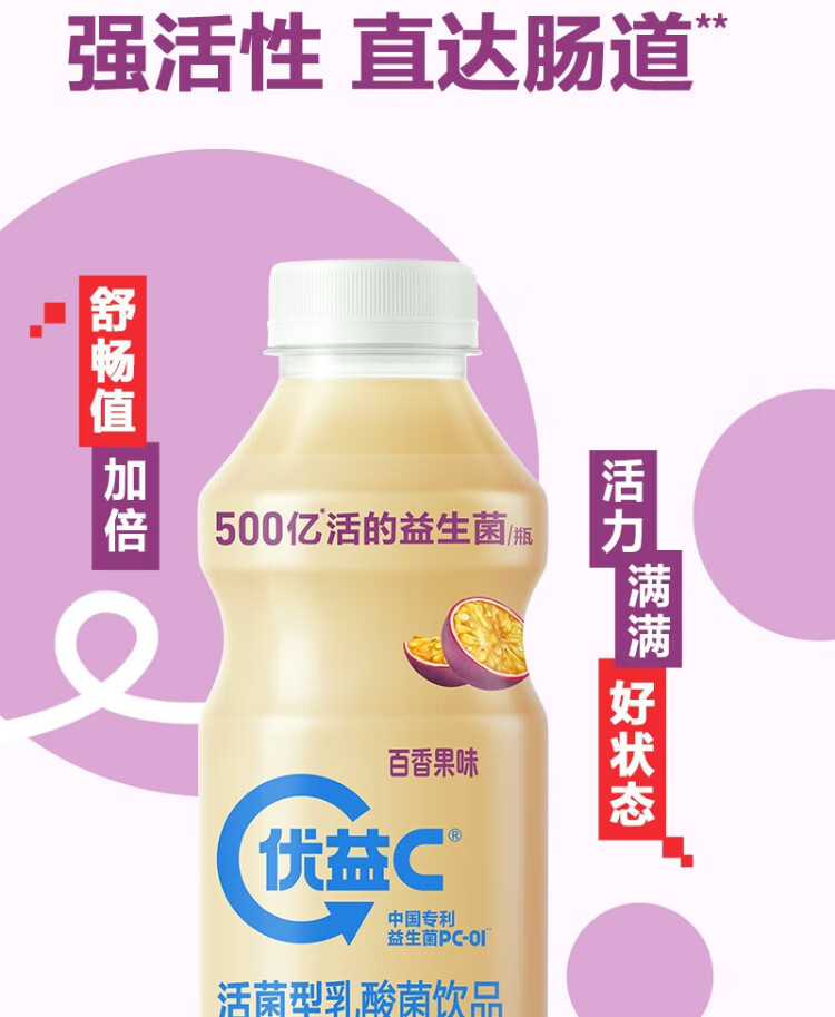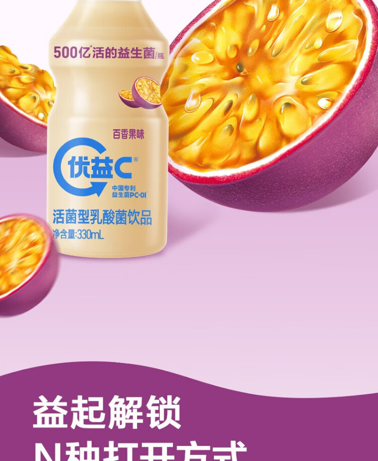Mengniu Youyi C live bacteria type lactic acid bacteria drink 0 fat probiotic drink passion fruit *8 bottles