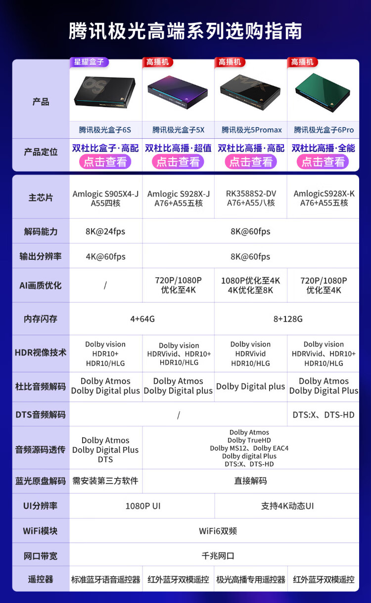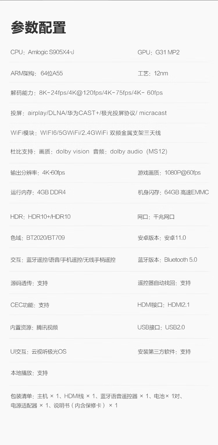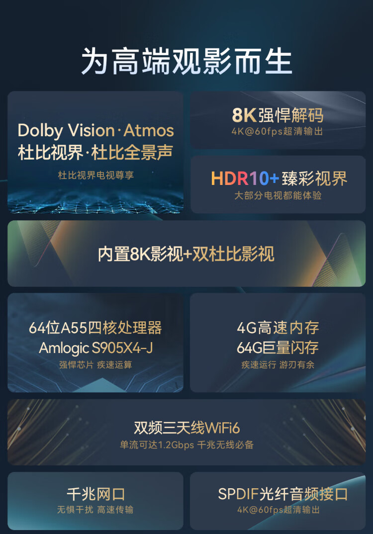 腾讯极光盒子6S 8K高清电视盒子 智能网络电视机顶盒 杜比视界全景声 4+64G 双频WiFi6千兆网口 START云游戏