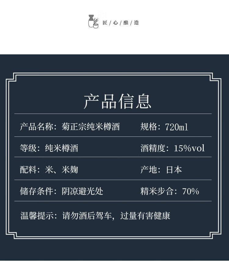 Kiku Masamune Junmai bottle wine 15% 720ml Japanese sake souvenir original imported wine