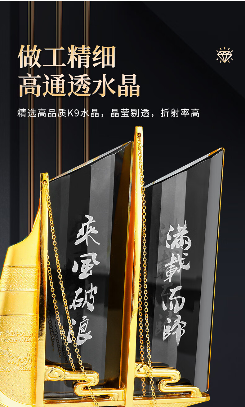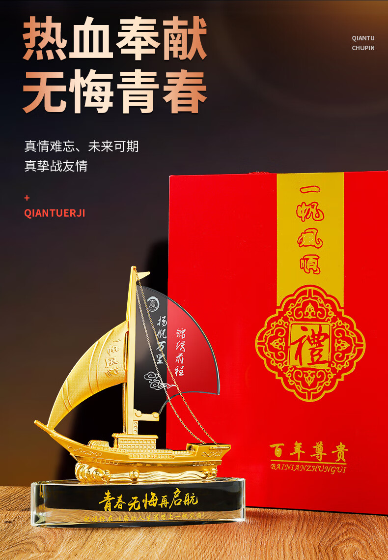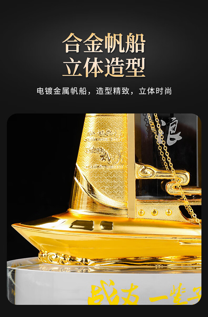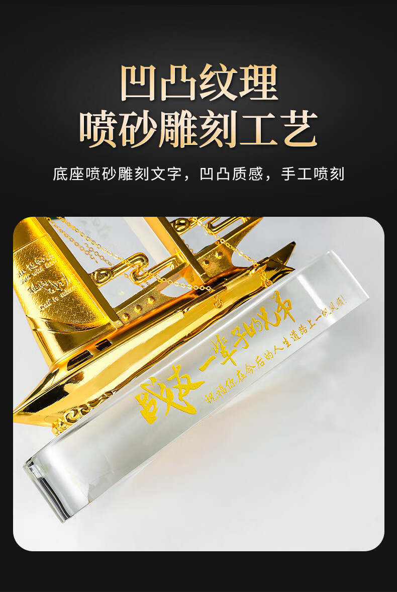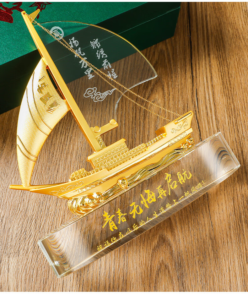 晨旭 退伍纪念品定制刻字水晶帆船摆件创意礼品送战友礼物男生兄弟退休离职老兵退役军人聚会留念
