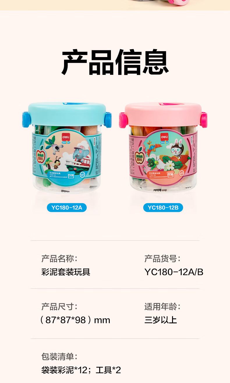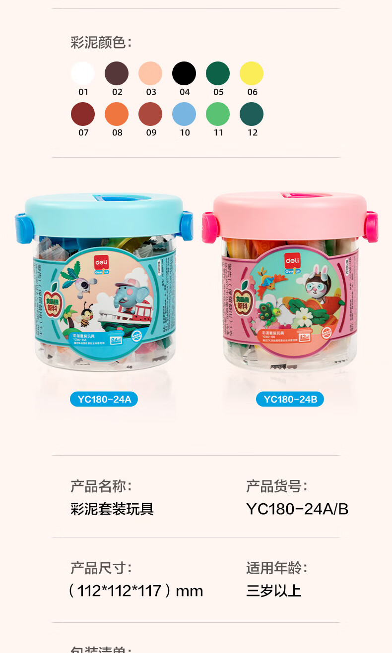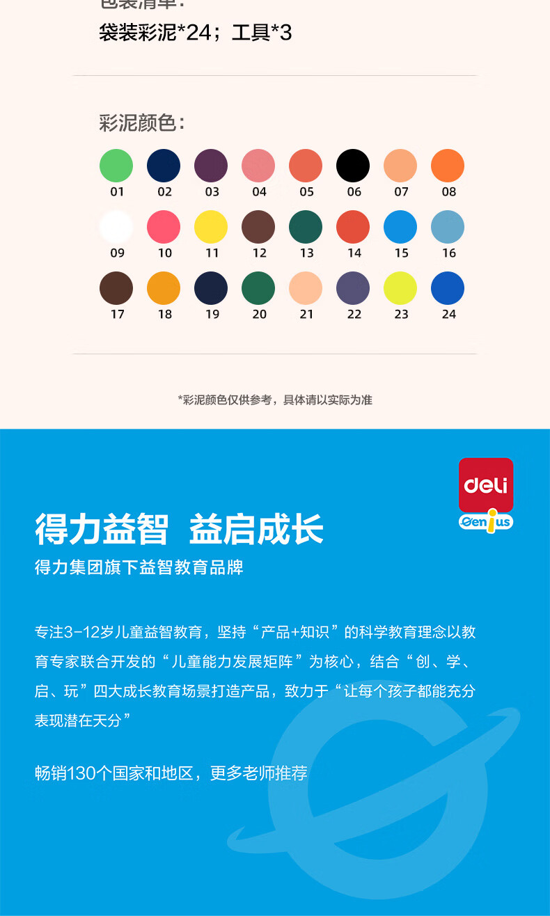 得力(deli)24色食品级彩泥 橡皮泥玩具美术手工美术DIY黏土文具非轻型粘土生日开学毕业儿童节礼物蓝色