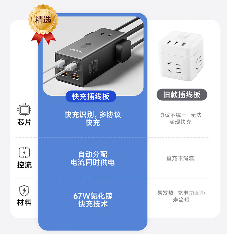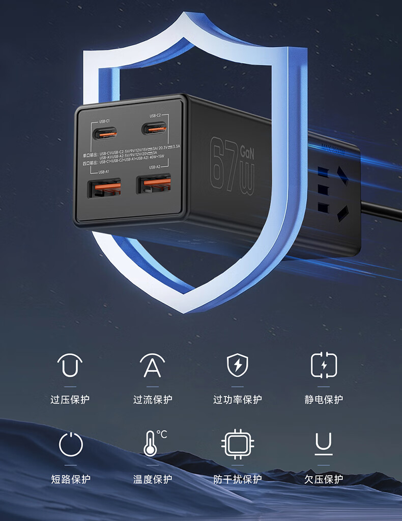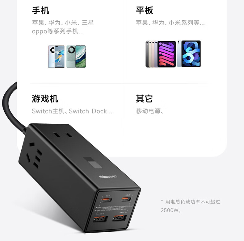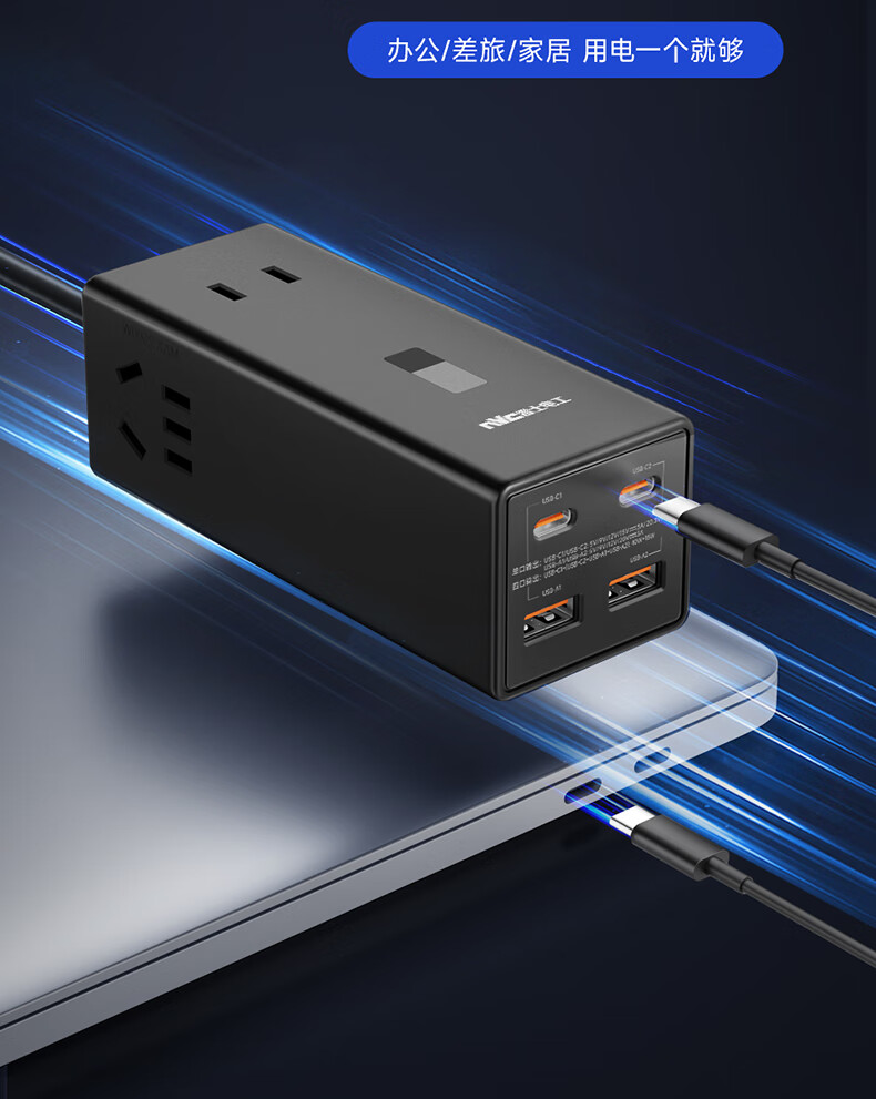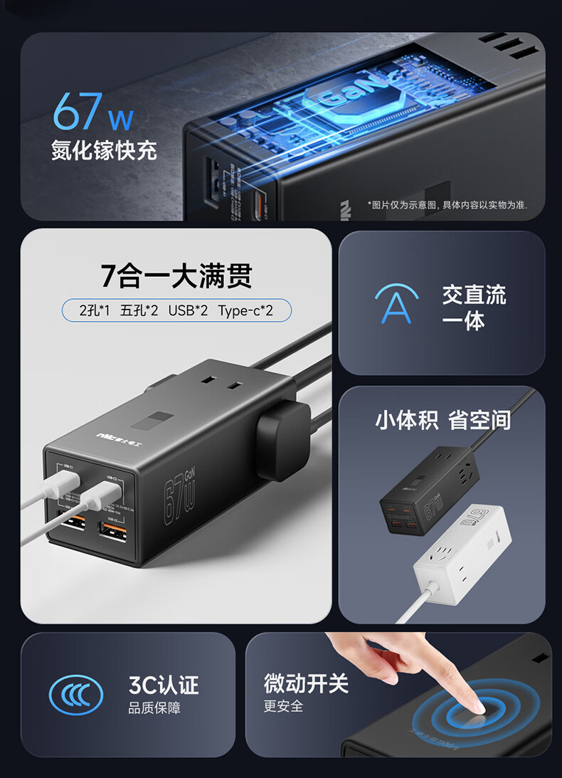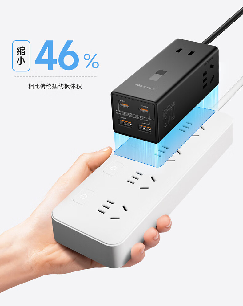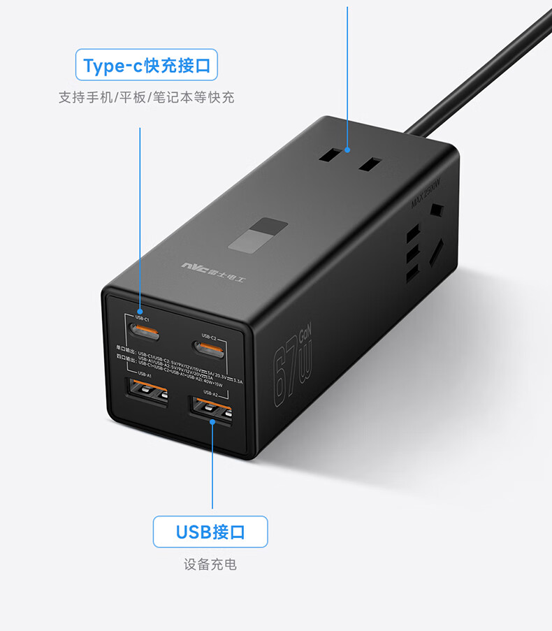 NVC NVC Elektriker 67 W Galliumnitrid-Buchse, intelligente Desktop-Ladestation, Schnelllade-Ladegerät, Plug-in-Drag-Strip-USB-Anschlussplatine, Multifunktions-Erweiterungsbuchse EP433N
