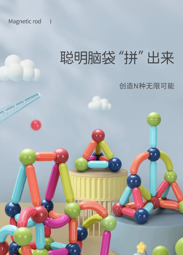 布鲁奇磁力棒儿童玩具男孩3-6岁磁力积木益智玩具男孩磁力片玩具1-3岁