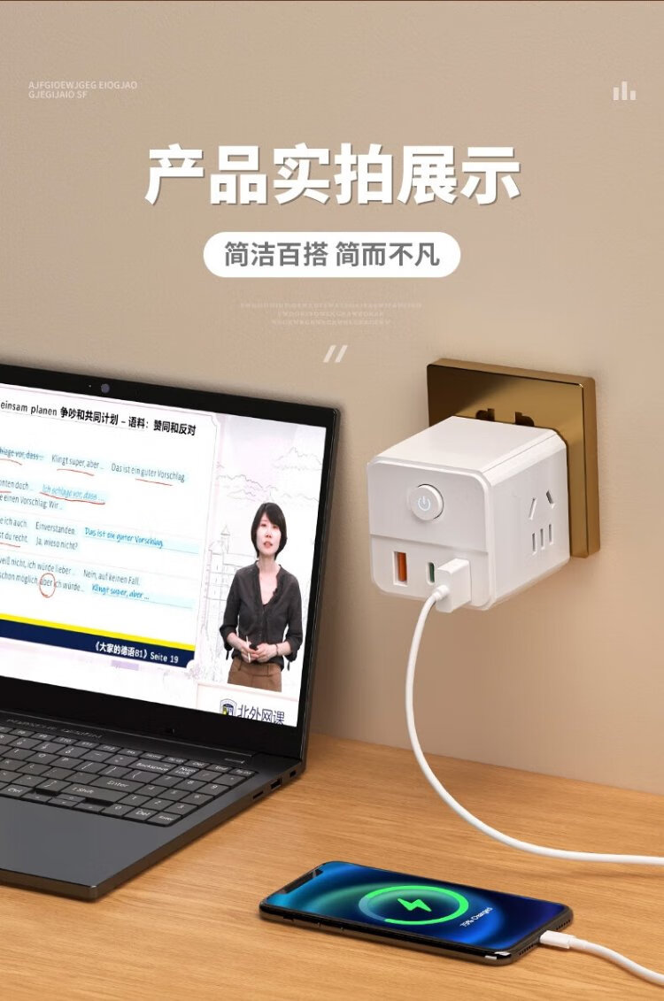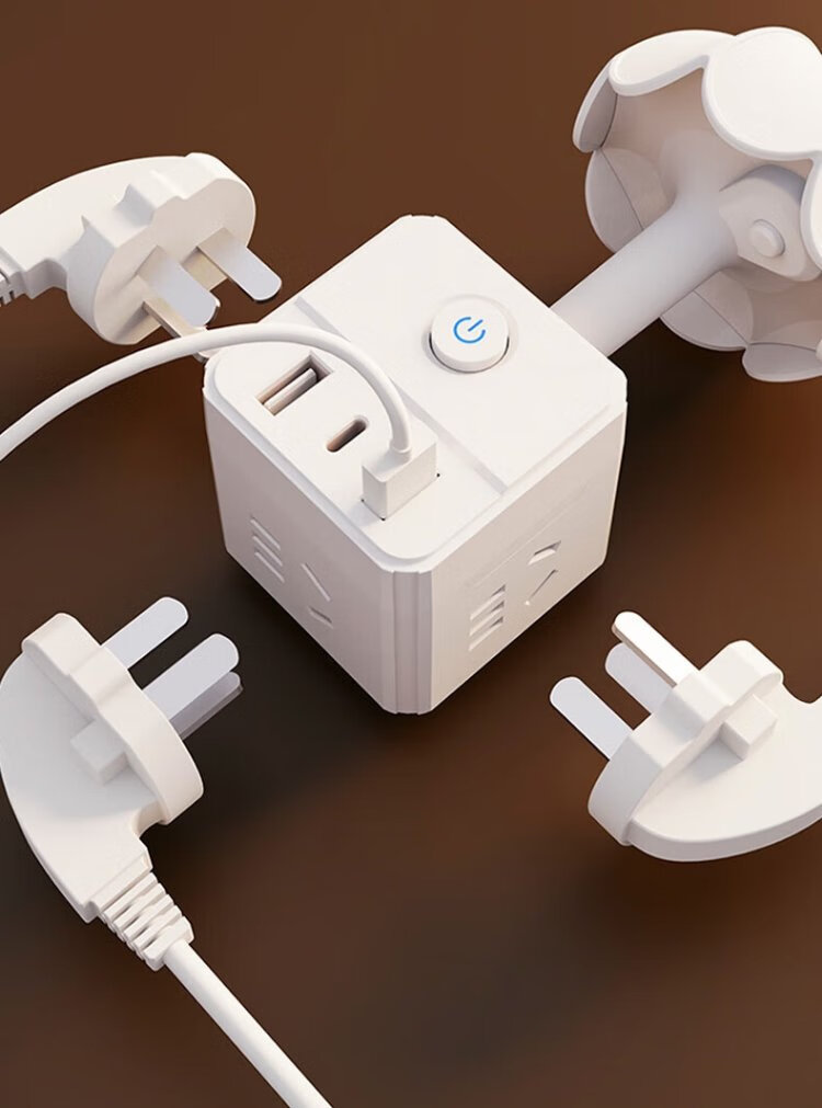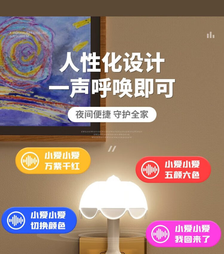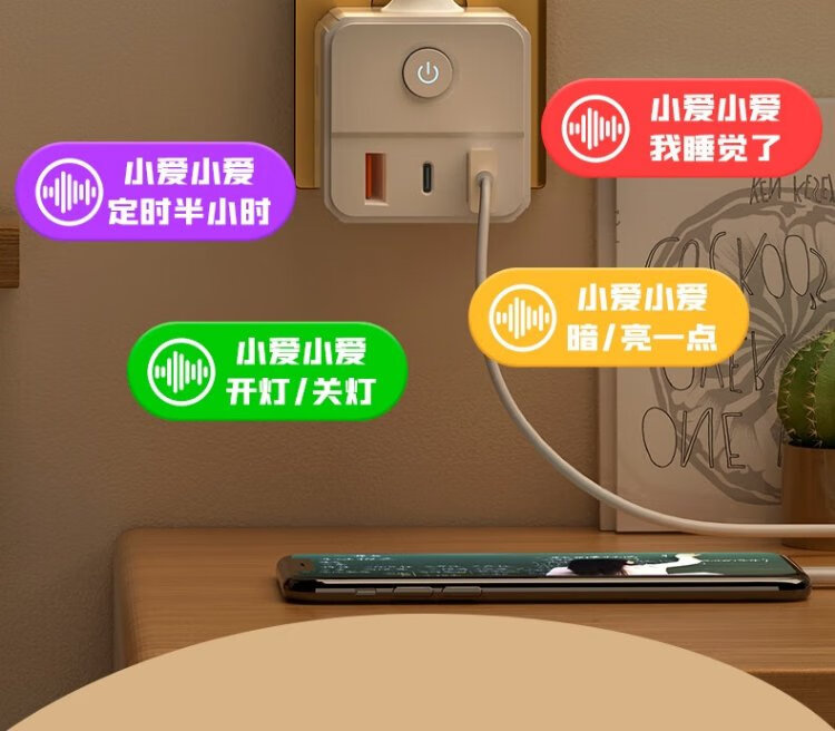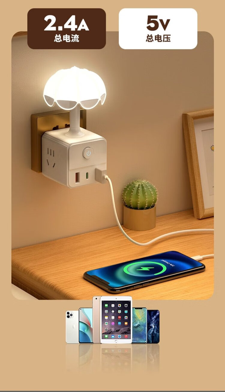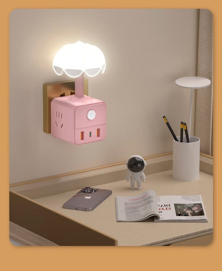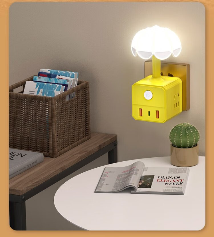 苏士赫尔摩【7彩AI声控】欧式温馨夜灯魔方插座 一转多USB+Type-C 无级调光三档色温,卧室氛围充电双场景