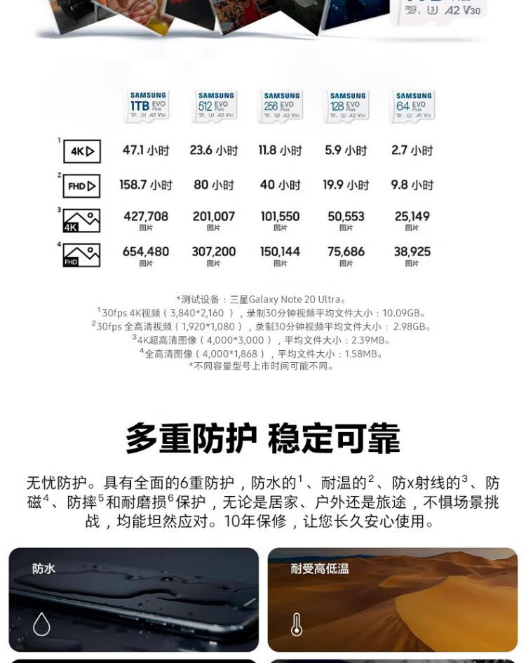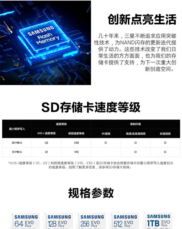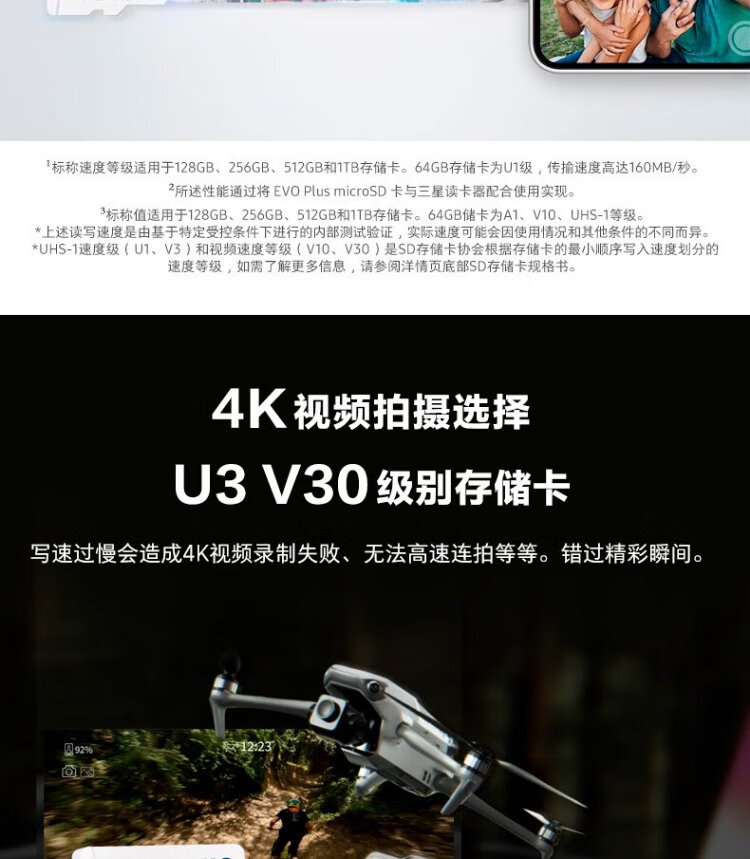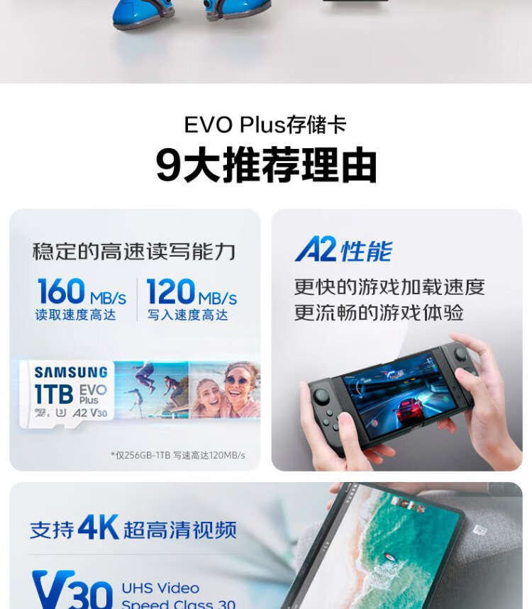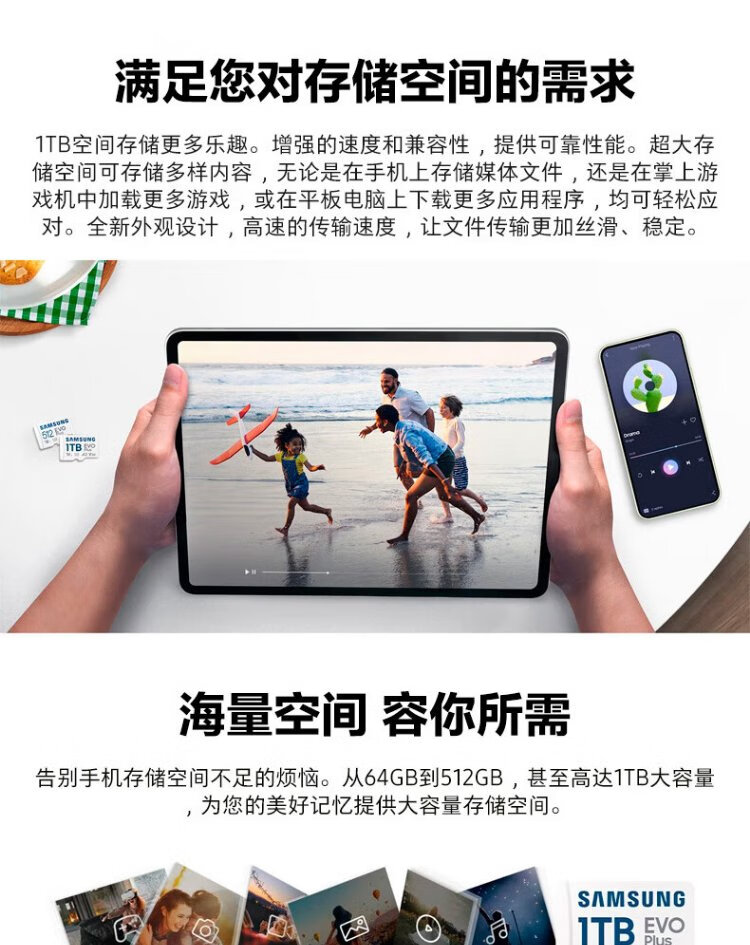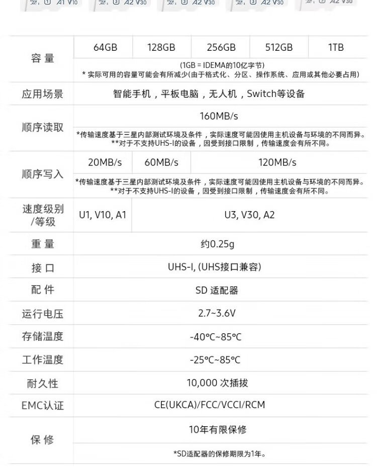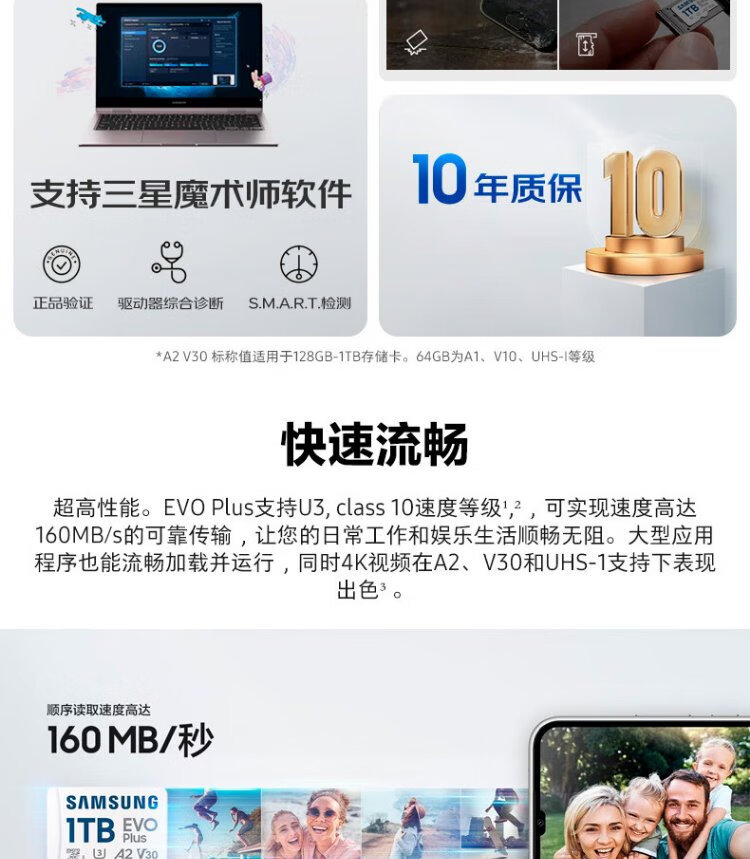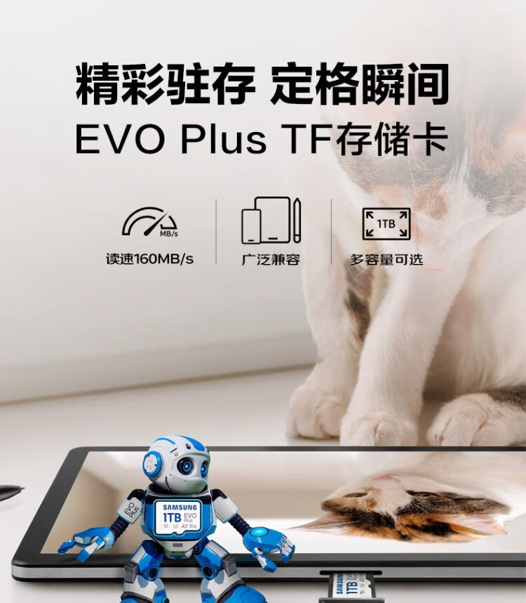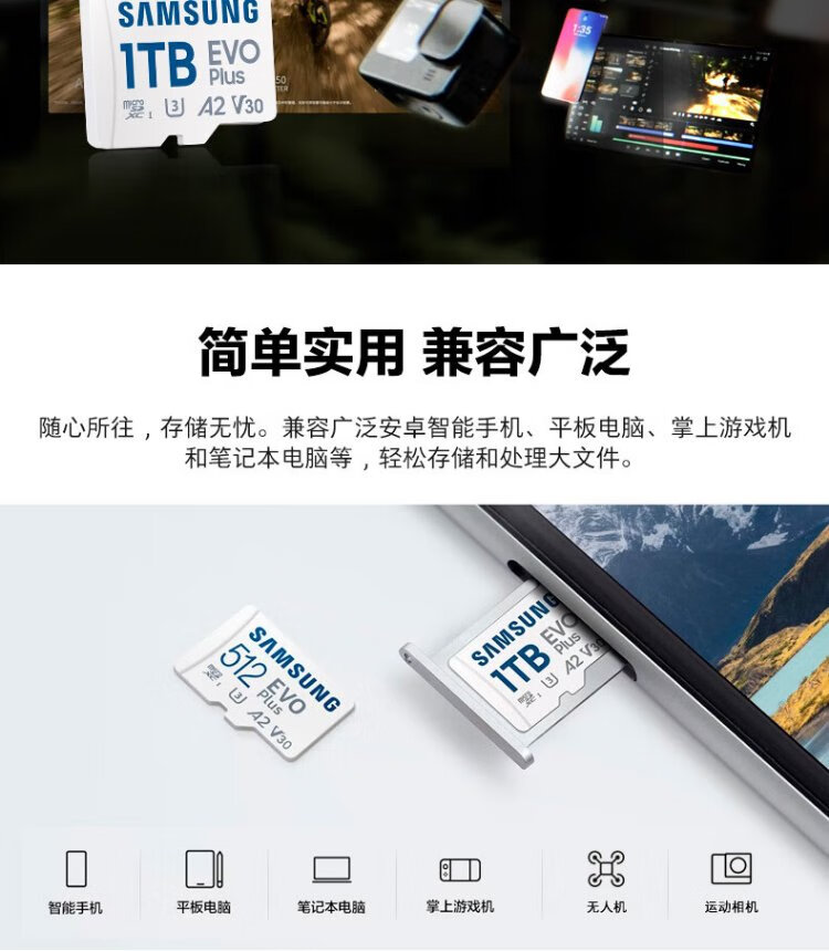 Samsung (SAMSUNG) 1TB TF (MicroSD) memory card EVO white card U3A2V30 action camera drone memory card supports 4K video reading 160MB/s and writing speed 120MB/s