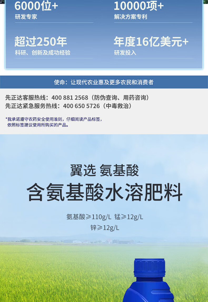 Syngenta Yishibang que contiene fertilizante soluble en agua de aminoácidos para vegetales y flores para promover la floración y proteger las flores y frutas fertilizante foliar 1L * 1 botella