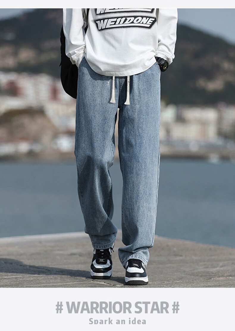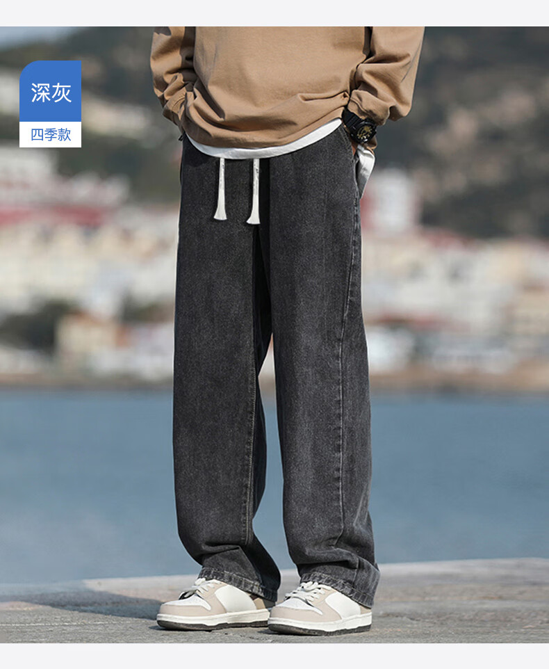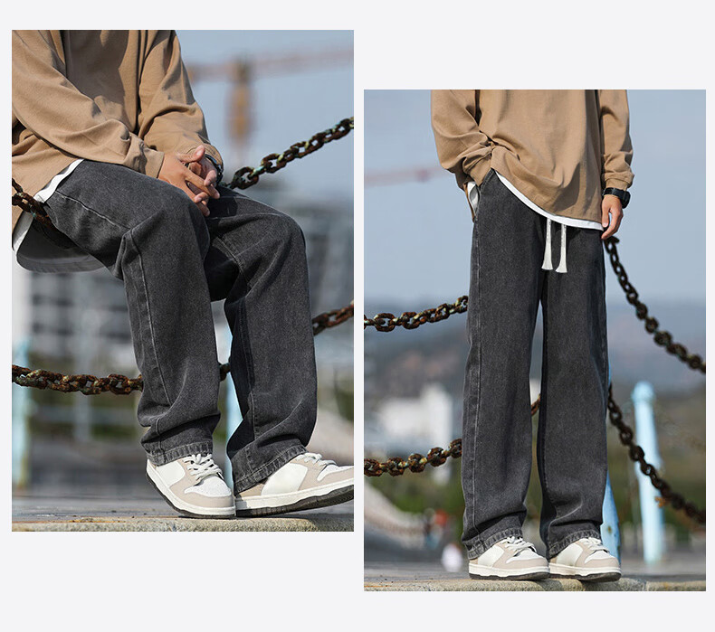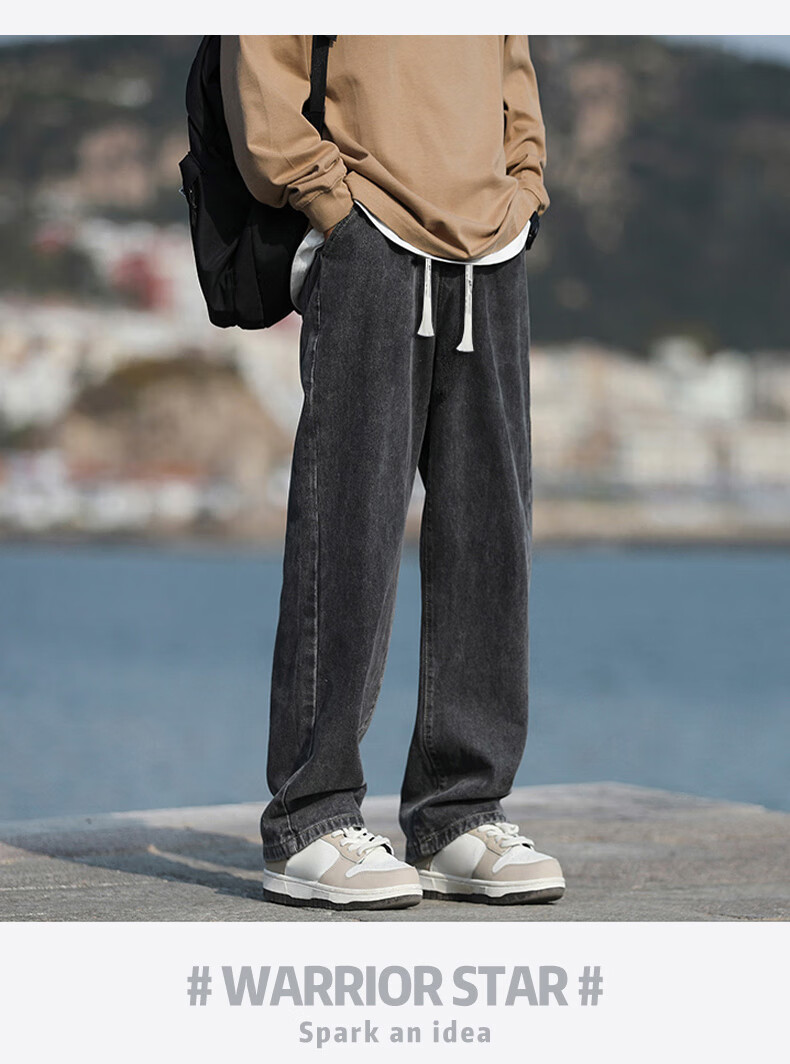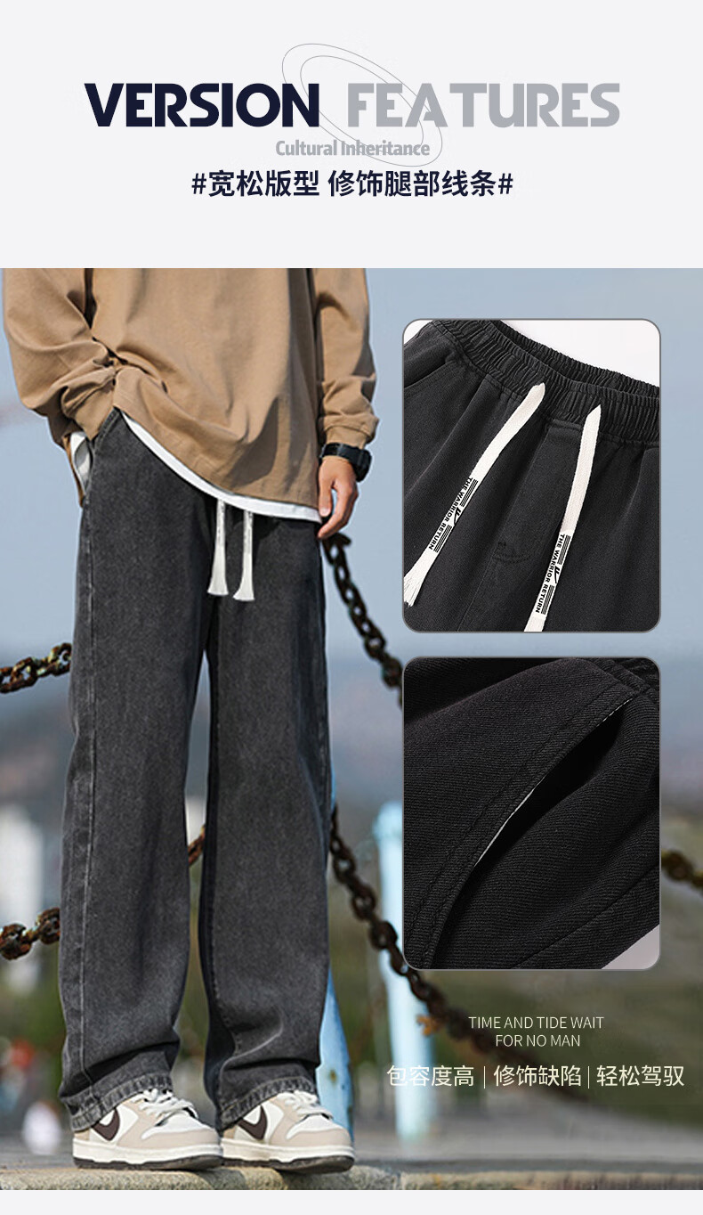 回力牛仔裤男春秋季直筒裤子男宽松阔腿休闲裤男美式长裤男裤 黑灰XL