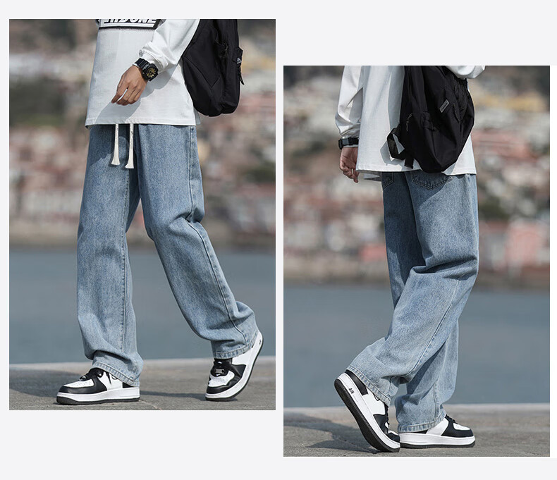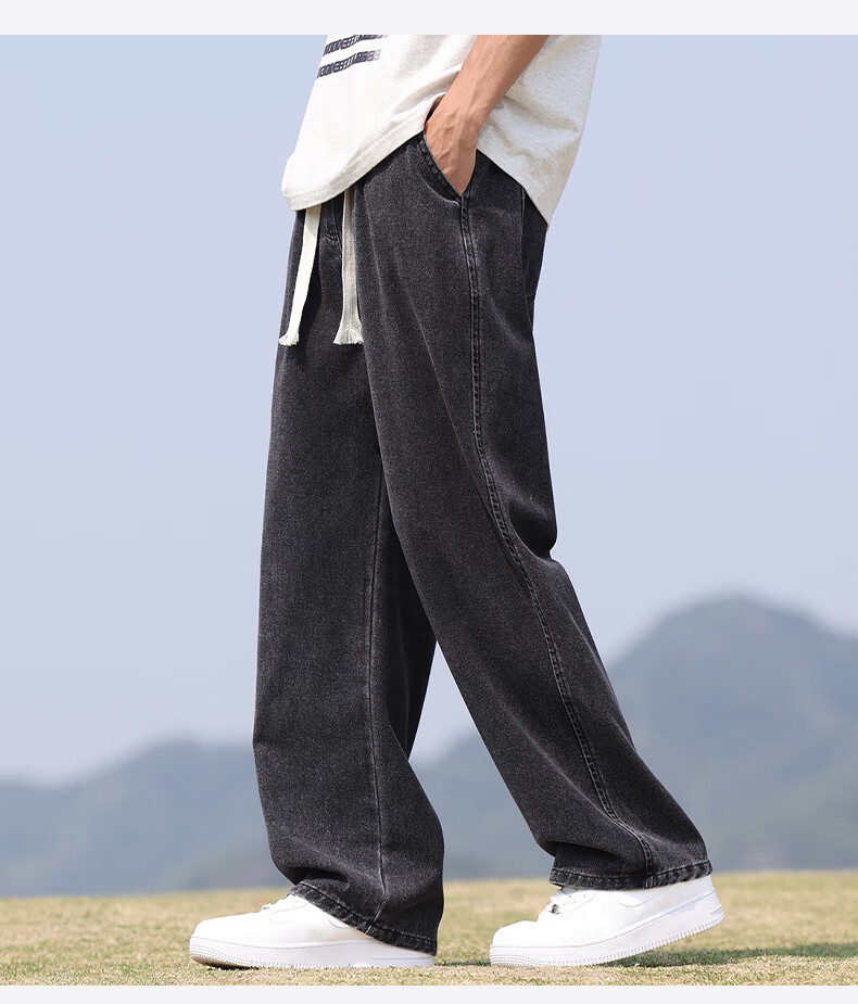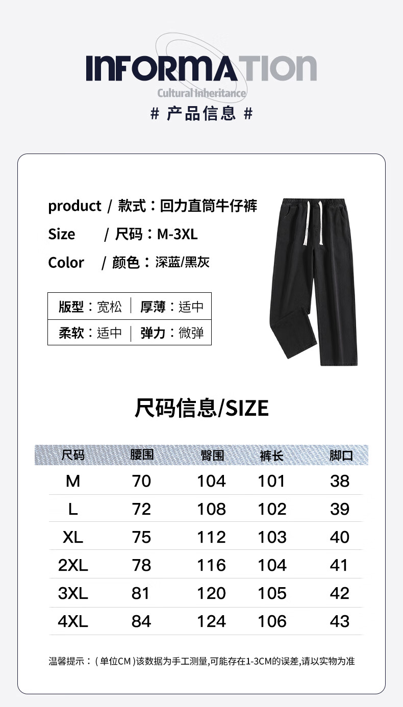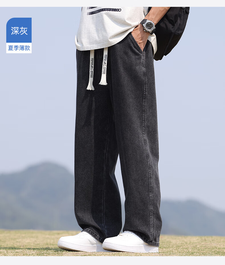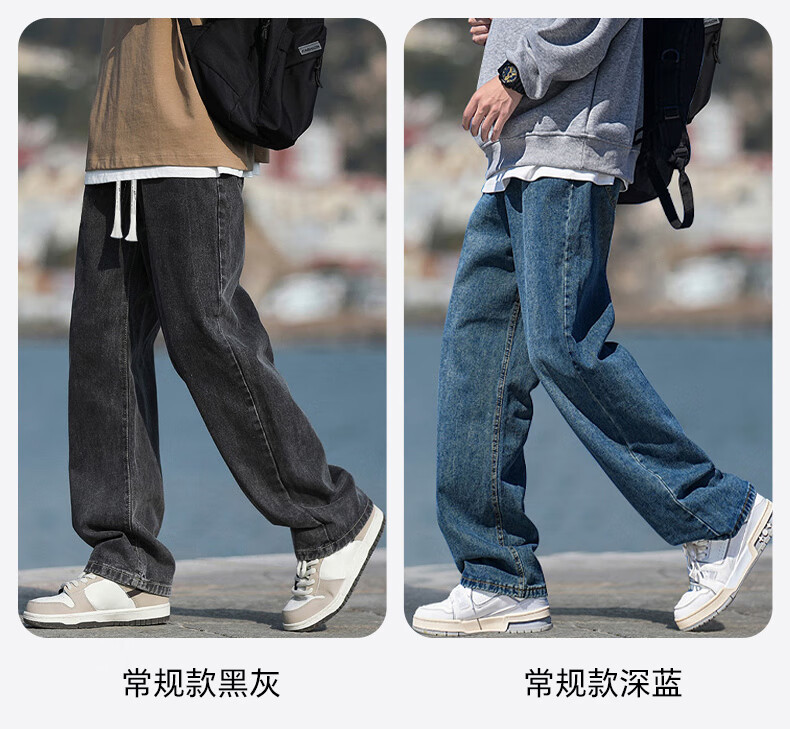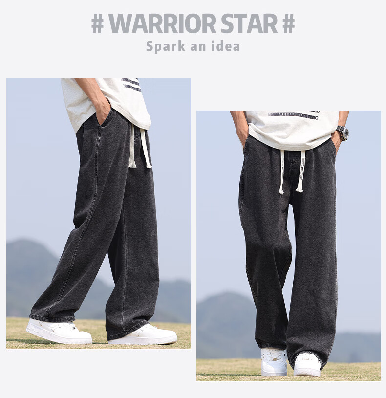 回力牛仔裤男春秋季直筒裤子男宽松阔腿休闲裤男美式长裤男裤 黑灰XL
