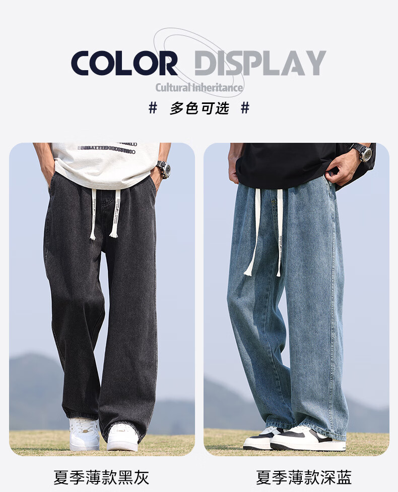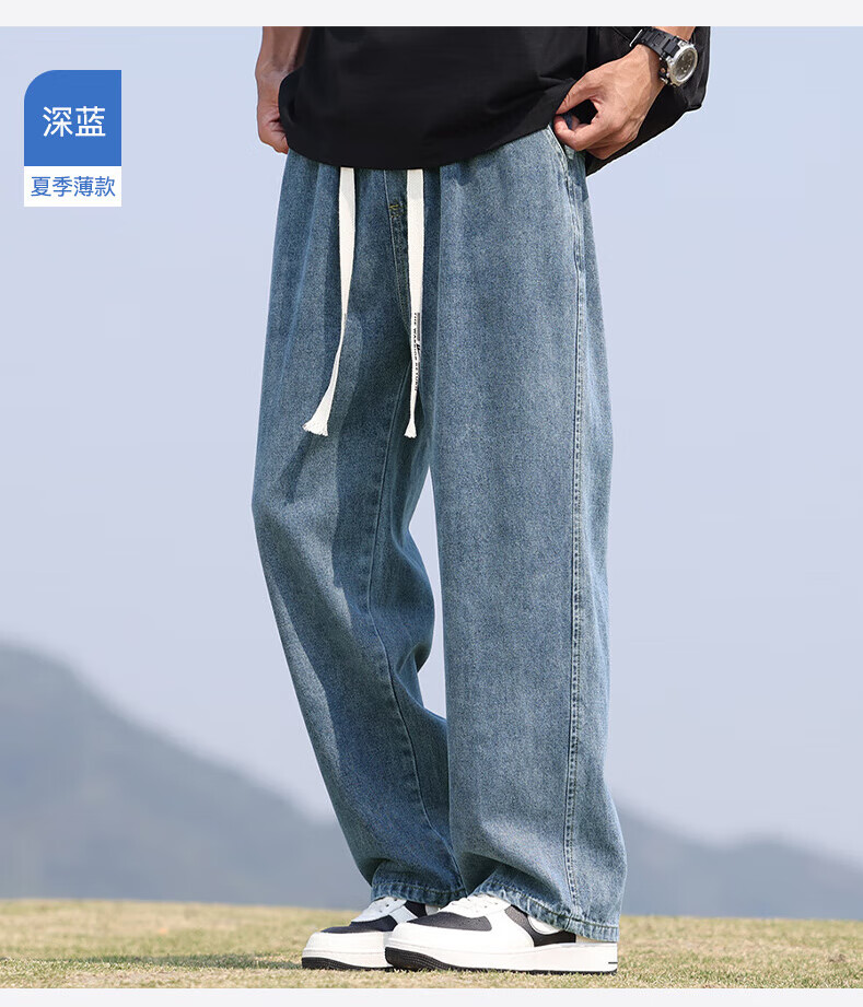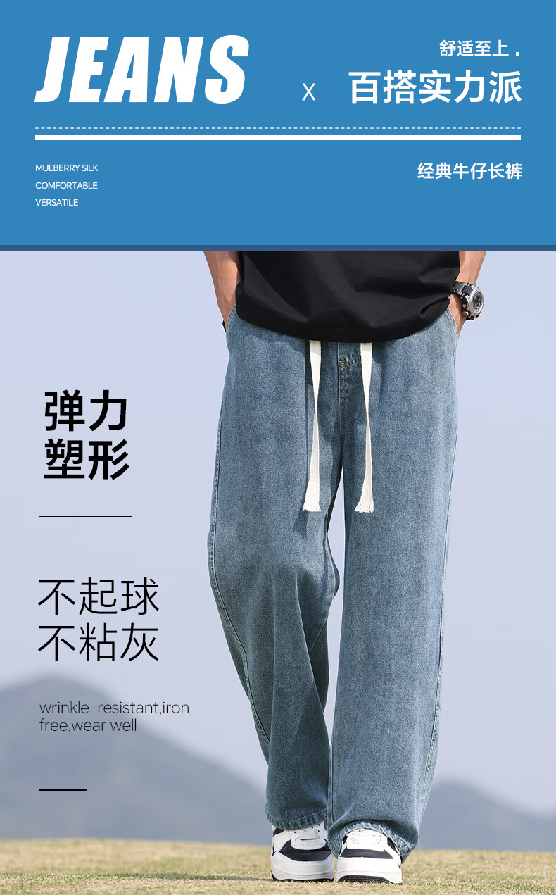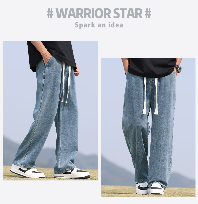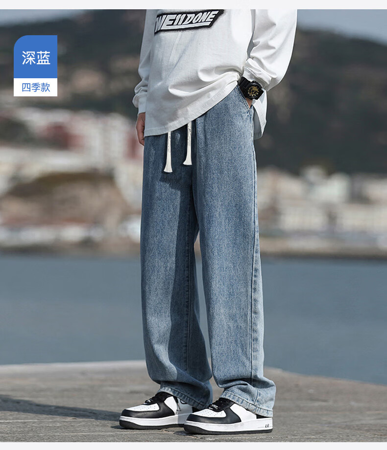 回力牛仔裤男春秋季直筒裤子男宽松阔腿休闲裤男美式长裤男裤 黑灰XL