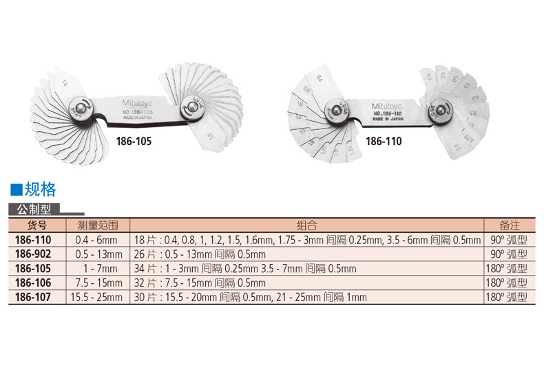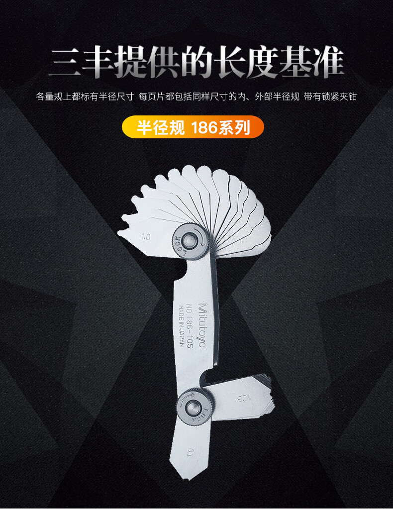 Mitutoyo Radius Gauge C Plate Arc Gauge R Gauge R Square Radius Sample High Precision Imported from Japan 186-105/1-7mm/34p