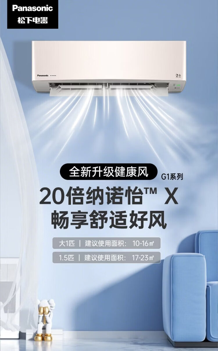 Panasonic air conditioner G1 series 1.5 HP first-level energy efficiency inverter air conditioner hang-up copper tube original compressor Nanoyi sterilization healthy air national subsidy LG13KQ10N