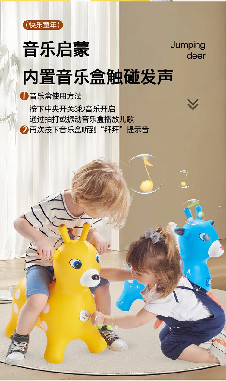 哈哈球儿童玩具音乐跳跳马摇马充气小皮马3-6岁幼儿园感统生日节日礼物