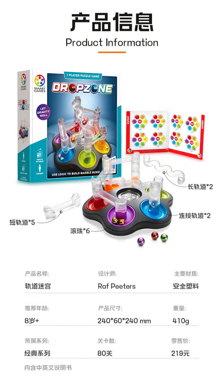Smart Games Physics Gravity Track Maze 8 Years Old - Adult 3D Path Building Puzzle Toy Birthday Gift